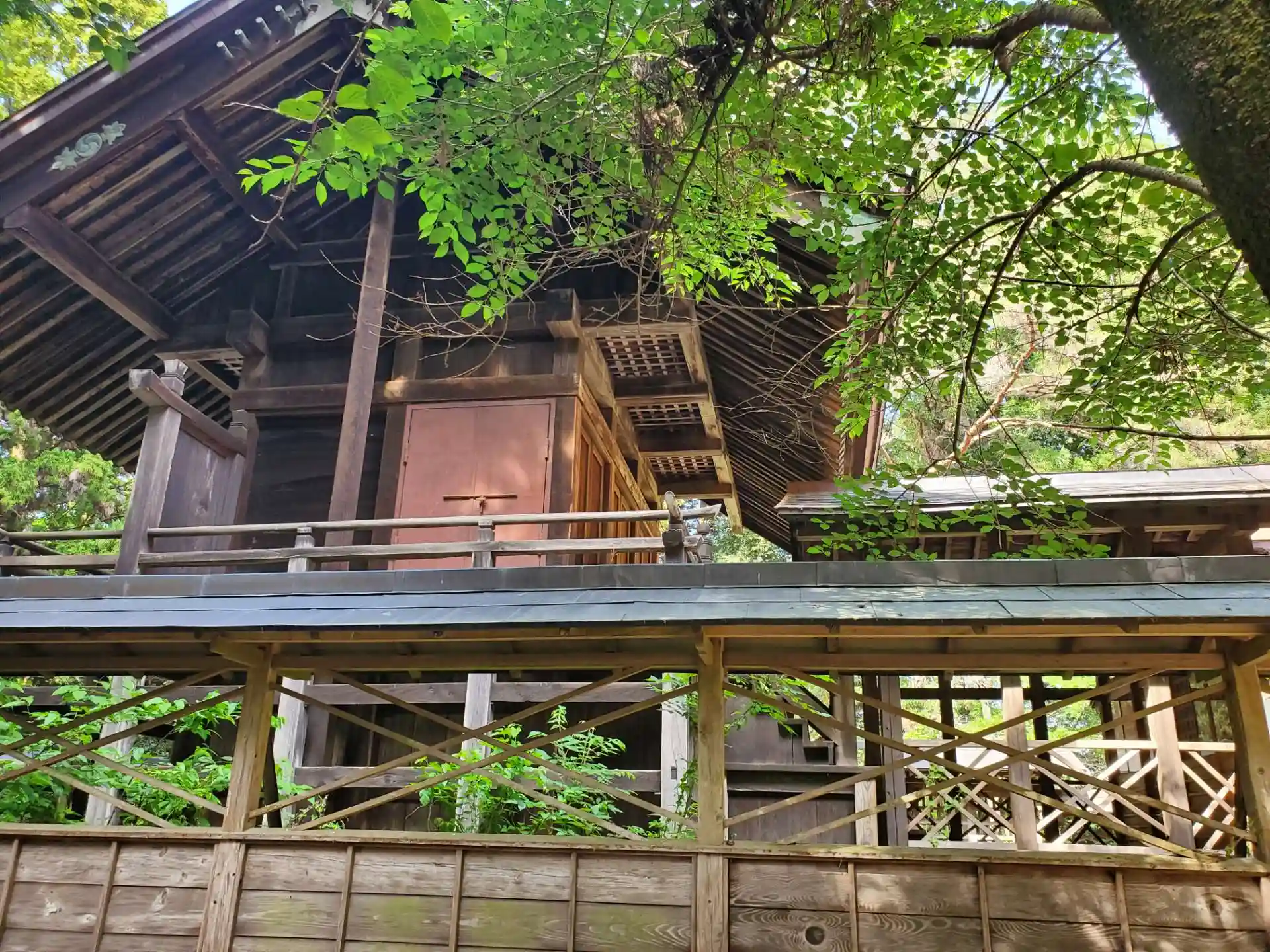 拝殿裏側の伊門(いと)神社にも参拝、亀岡八幡宮本殿の後ろ側は歴史を感じる雰囲気のある場所でした。木の趣が多くの時の流れを感じさせます。