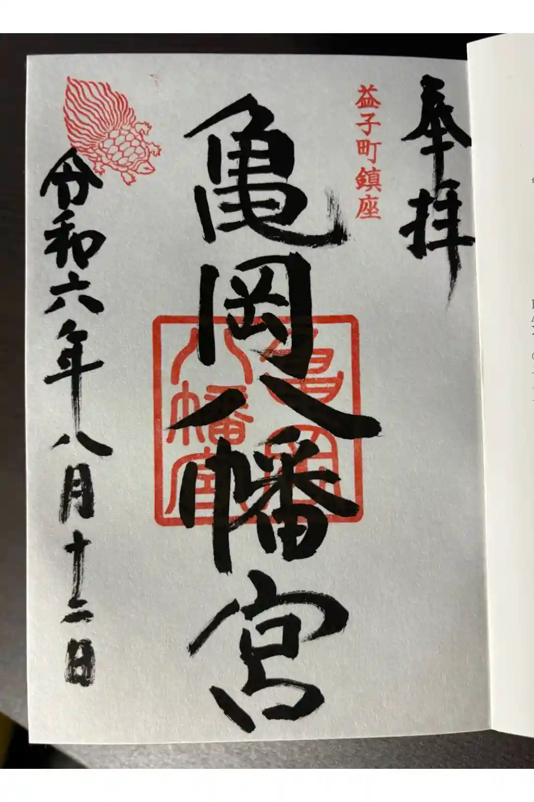 ![亀岡八幡宮の御朱印]()