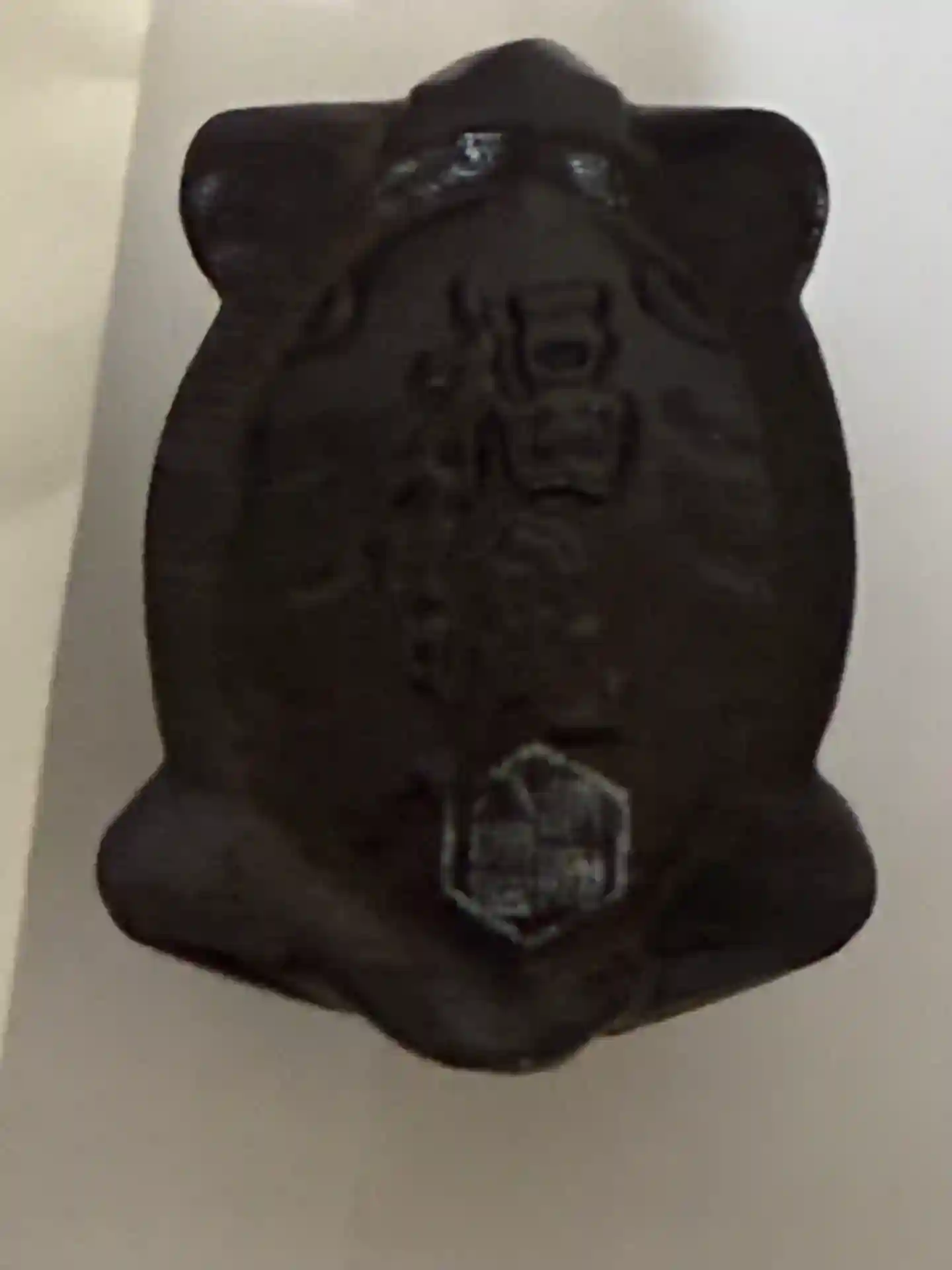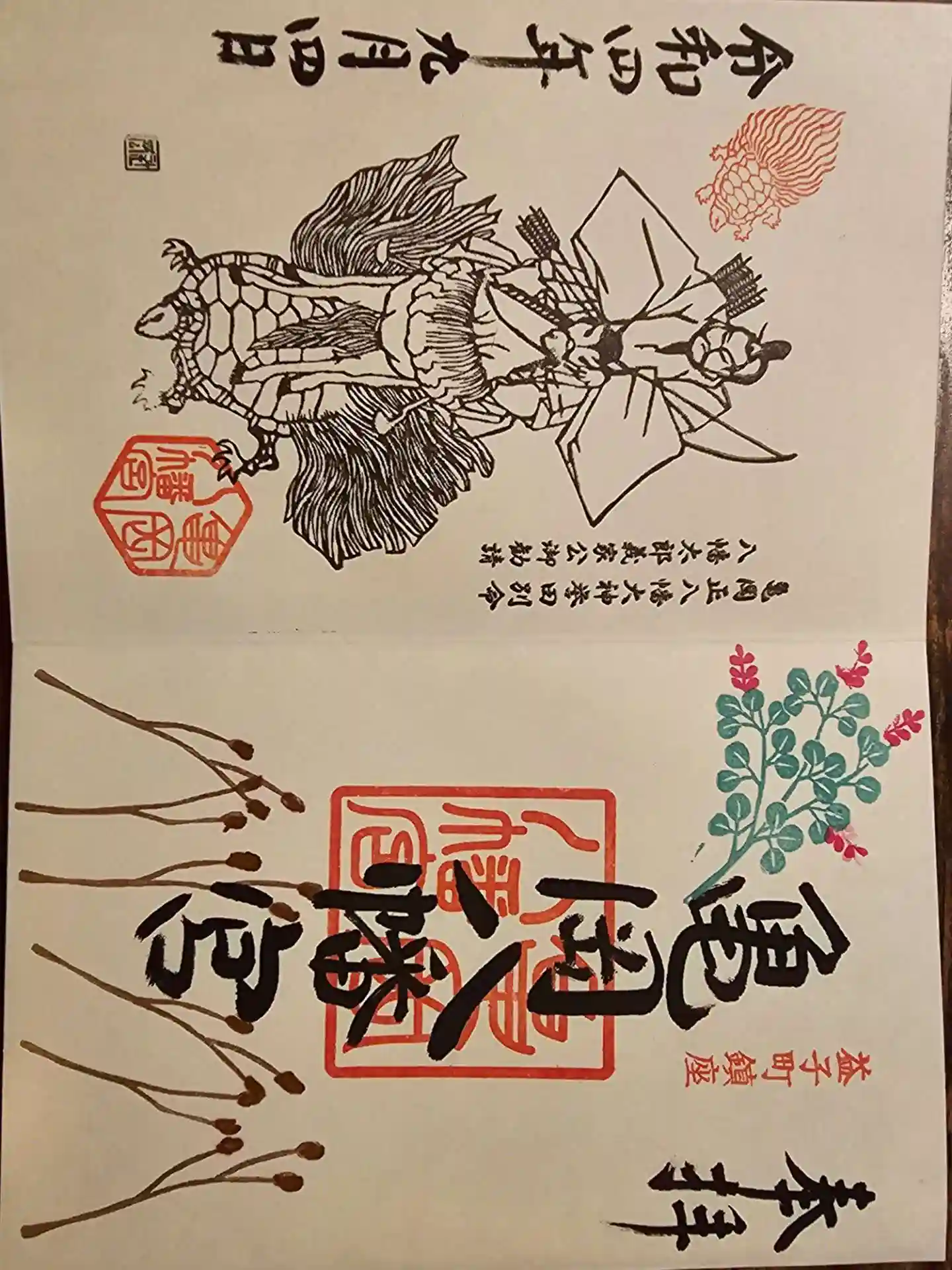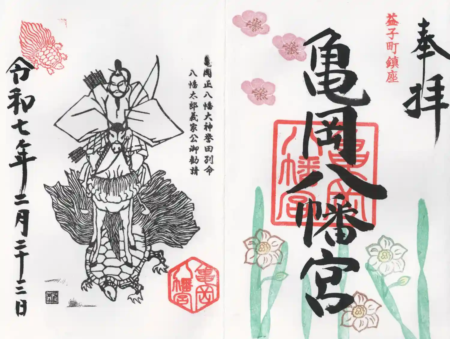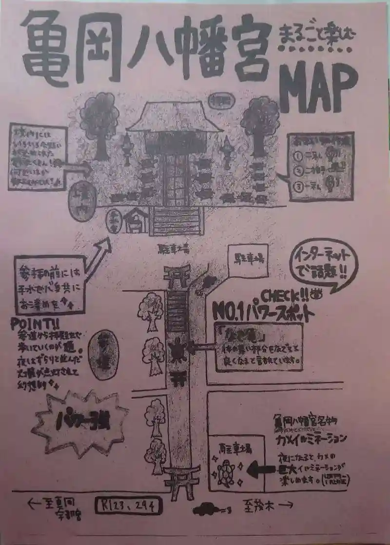 甲羅の横と裏に亀岡八幡宮の印が押されてます。