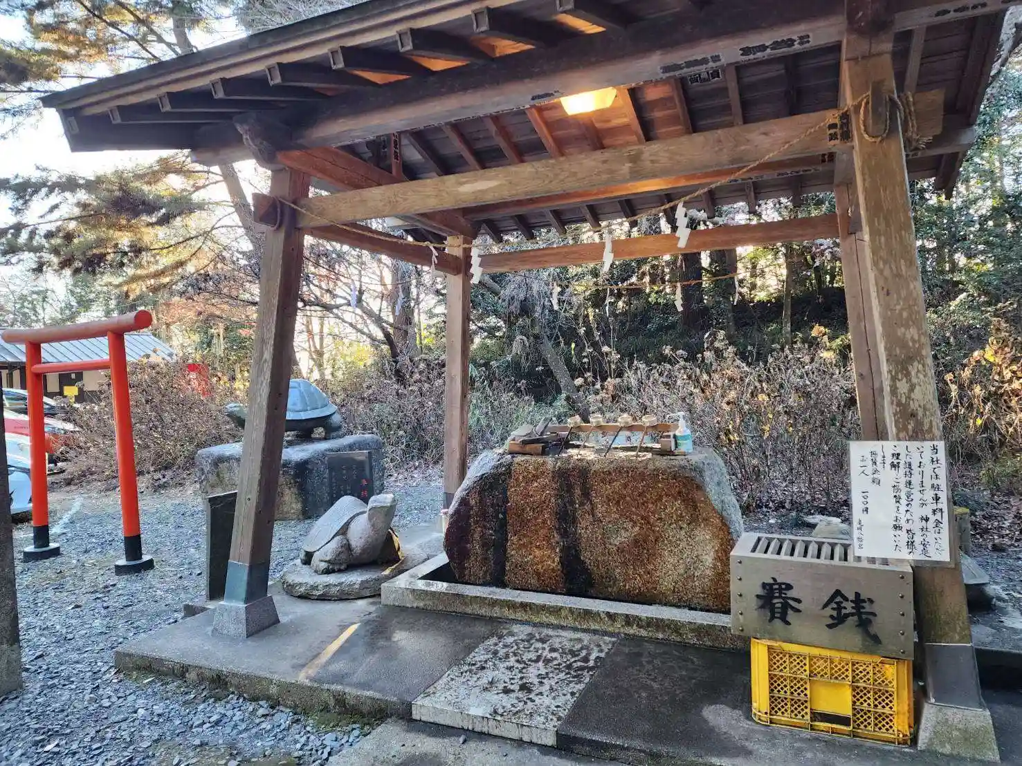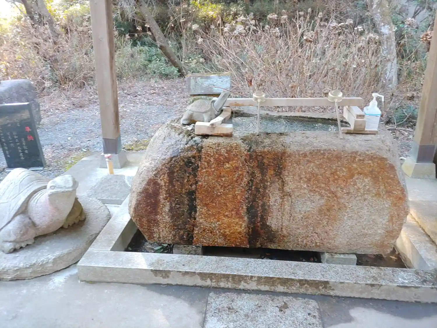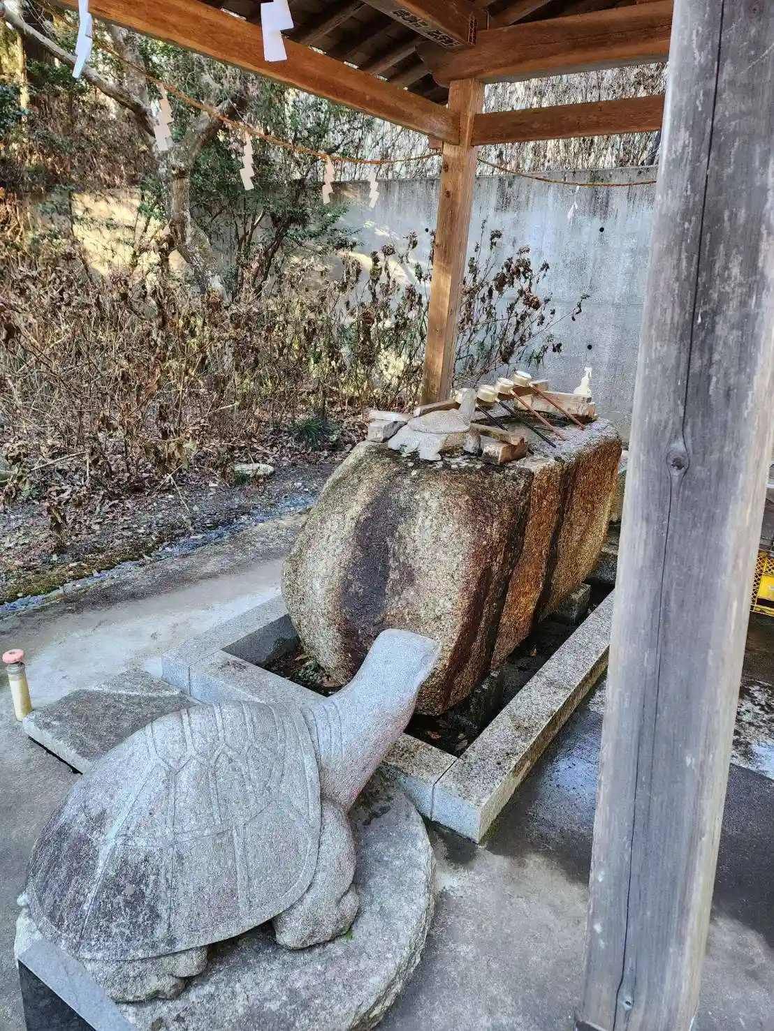 手水舎横の亀さん(鳥居もついています)