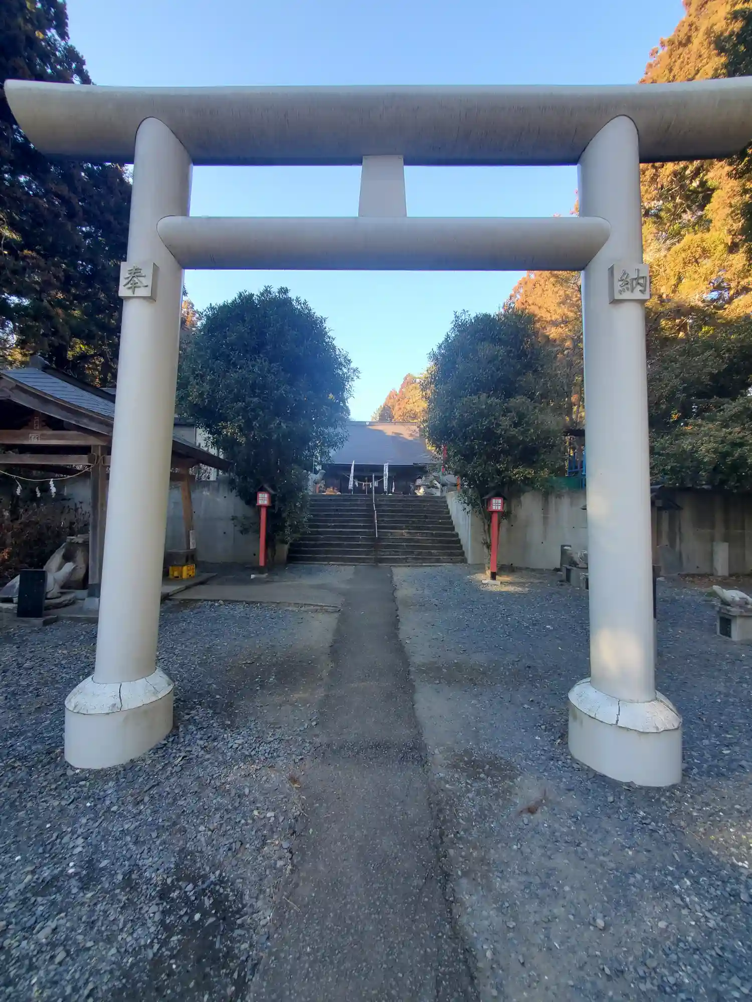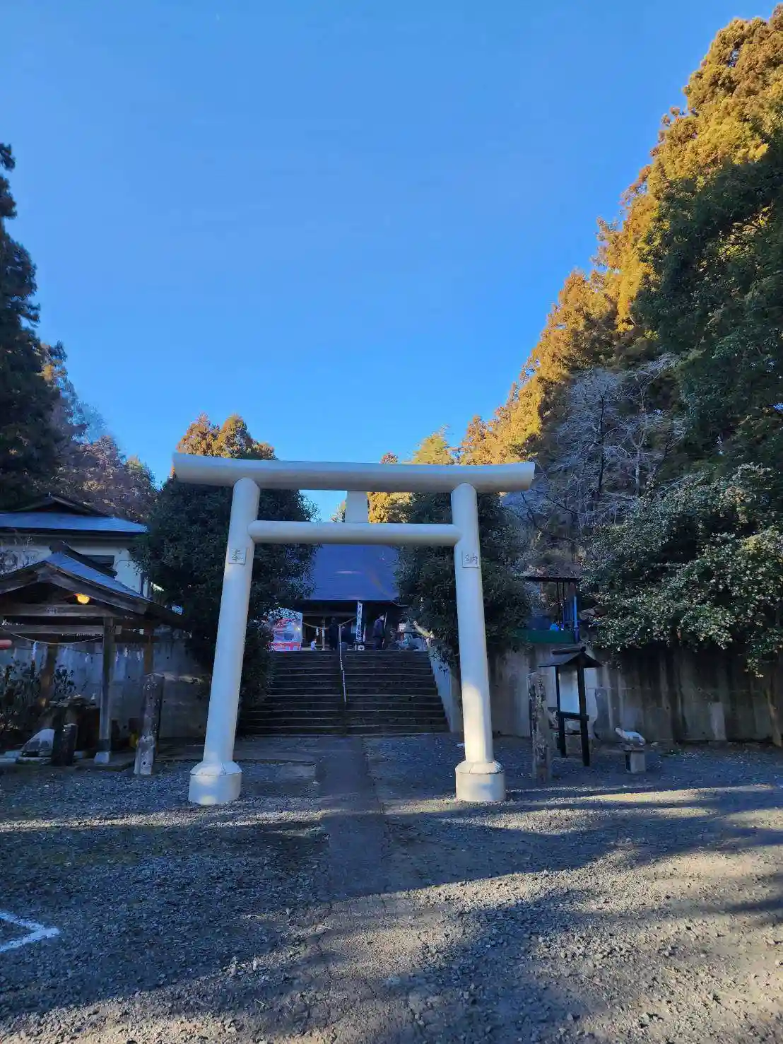 一之鳥居の右手にも駐車場があるほか、参道半ばにもあるようですが、一番拝殿に近い駐車場に停めました。…