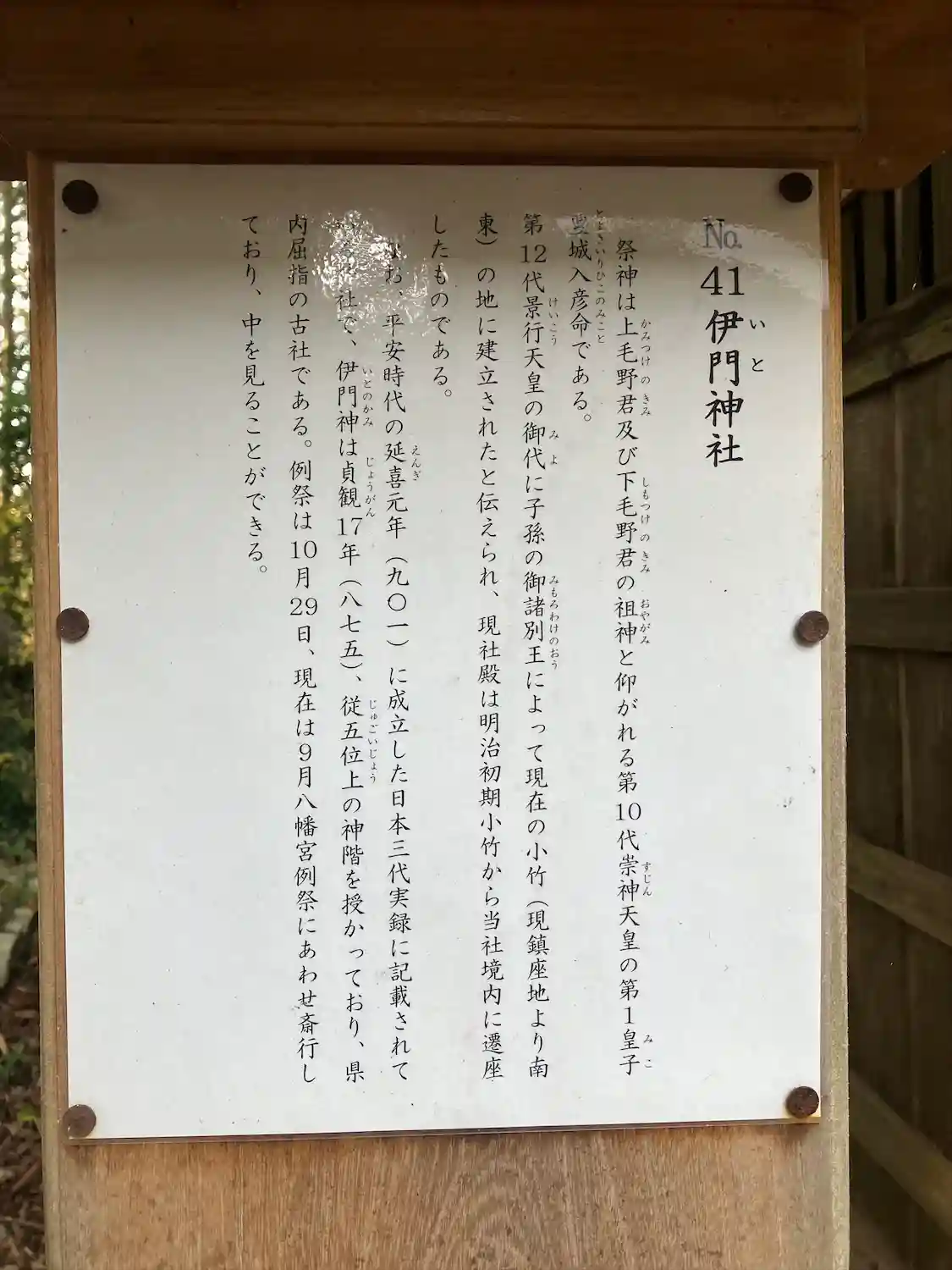 伊門(いと)神社は平安時代の書物に名前の出てくる大変古い神社