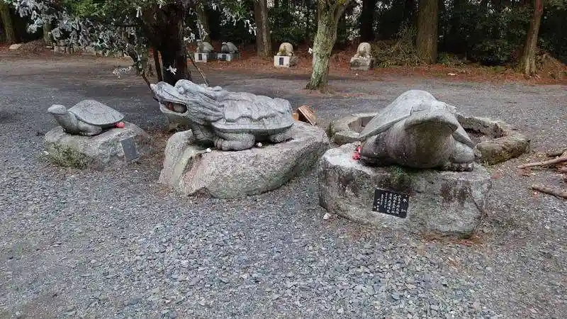 源義家が奥州へ向う途中戦勝祈願の際、芦橿沼上に大亀が現われ奇端(きずい=めでたいことの前兆として起こる不思議な現象)を示したことにちなみ当社古殿地(参道中程)に自然石の神亀が祀 られ、この神亀を撫でることにより願いが叶うと古くから言い伝えられております。
