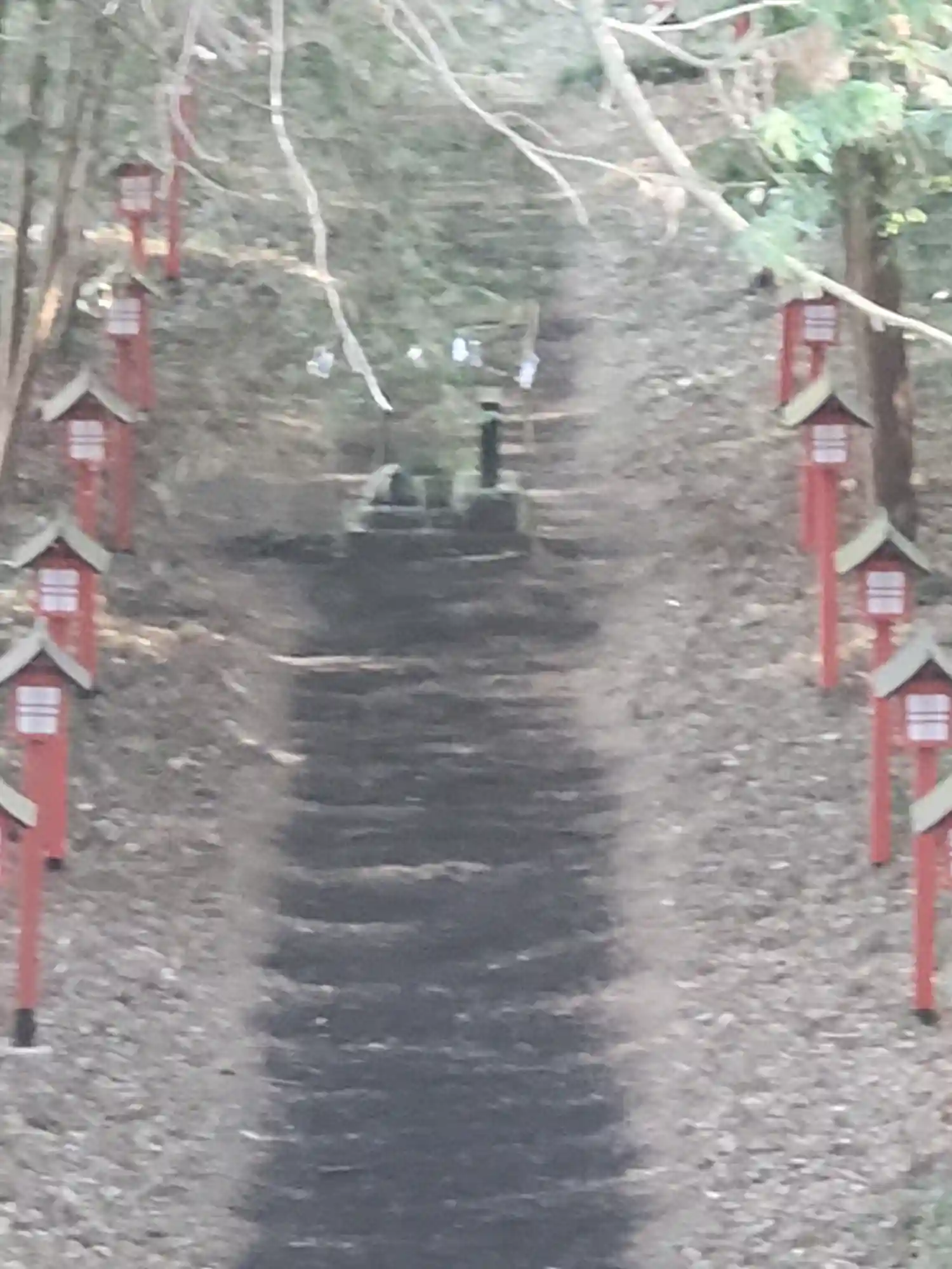 先に見える朱塗りの鳥居のほうが明るくてホッとしました。
