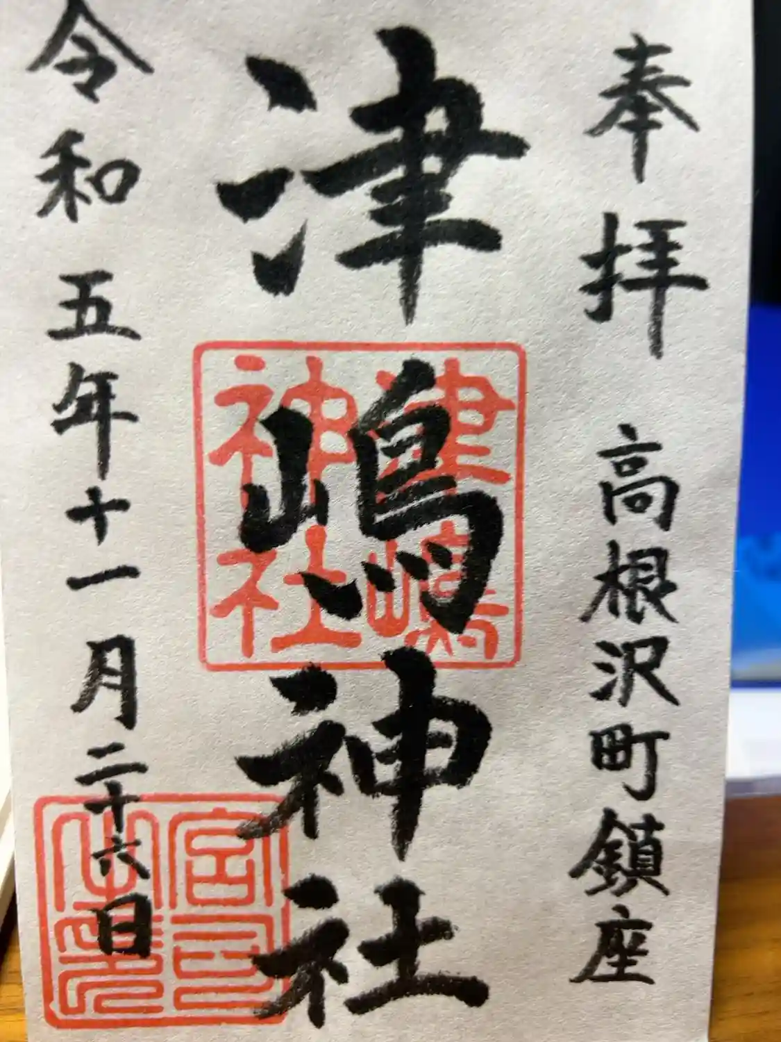 書き置きの御朱印。