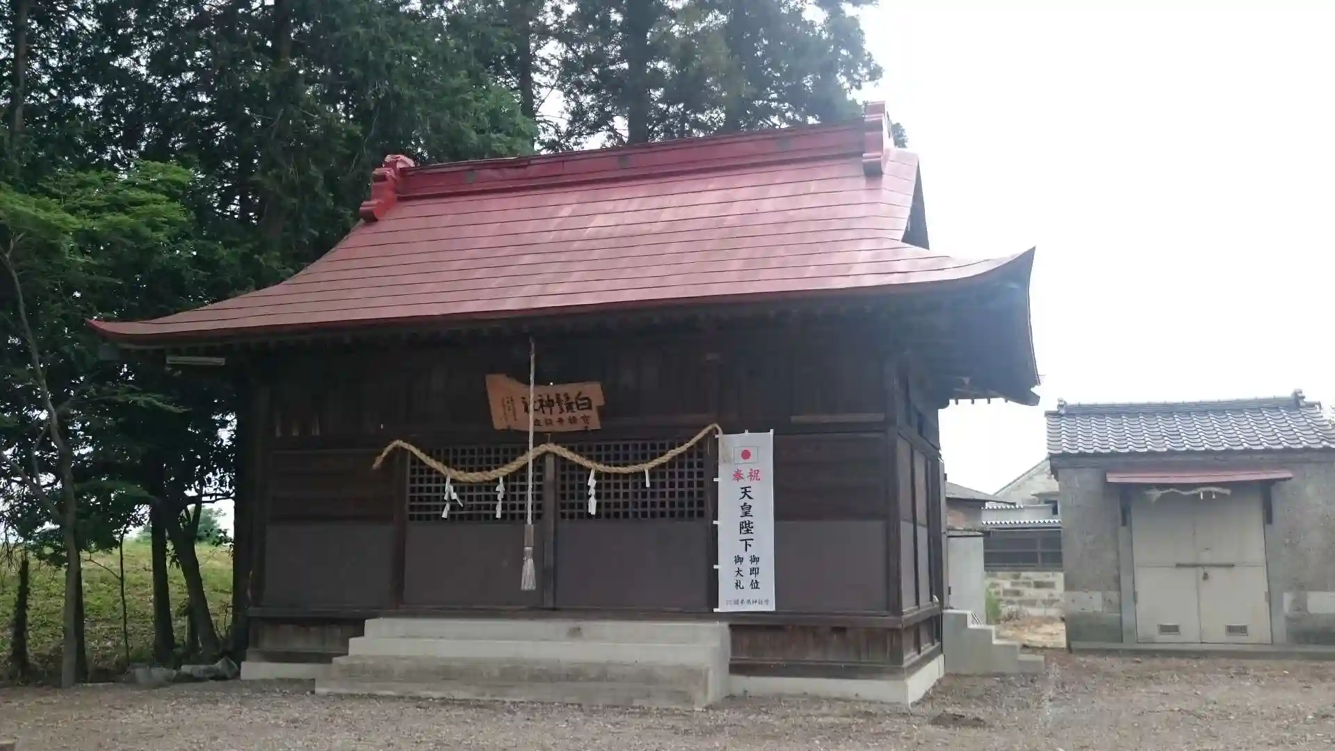 社殿後ろに控えている倉庫にはお神輿がしまってありそうな予感がします