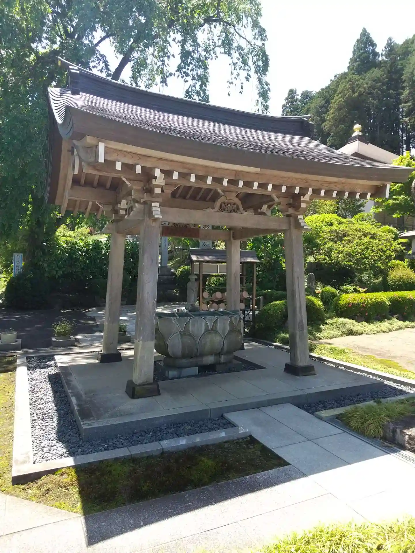 手前には小さな滝が流れる立派でキレイなお堂です✨
