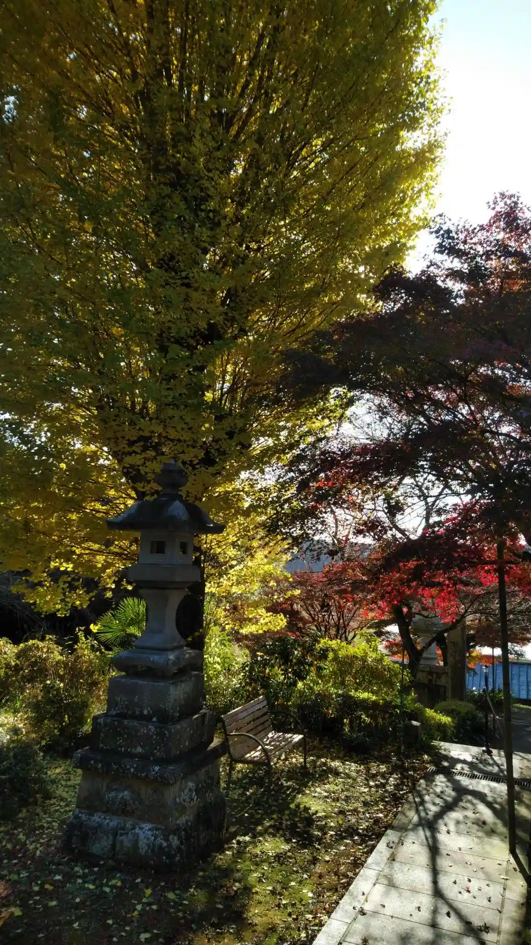 参道の途中から。イチョウの黄色が目立ちます。