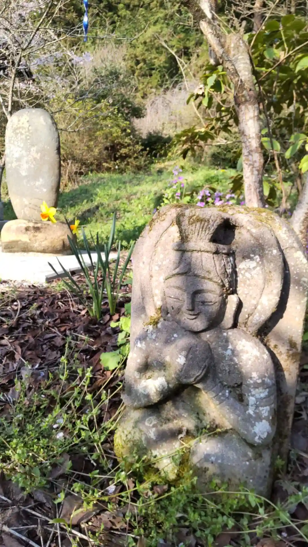 石仏の後ろにもお花が……