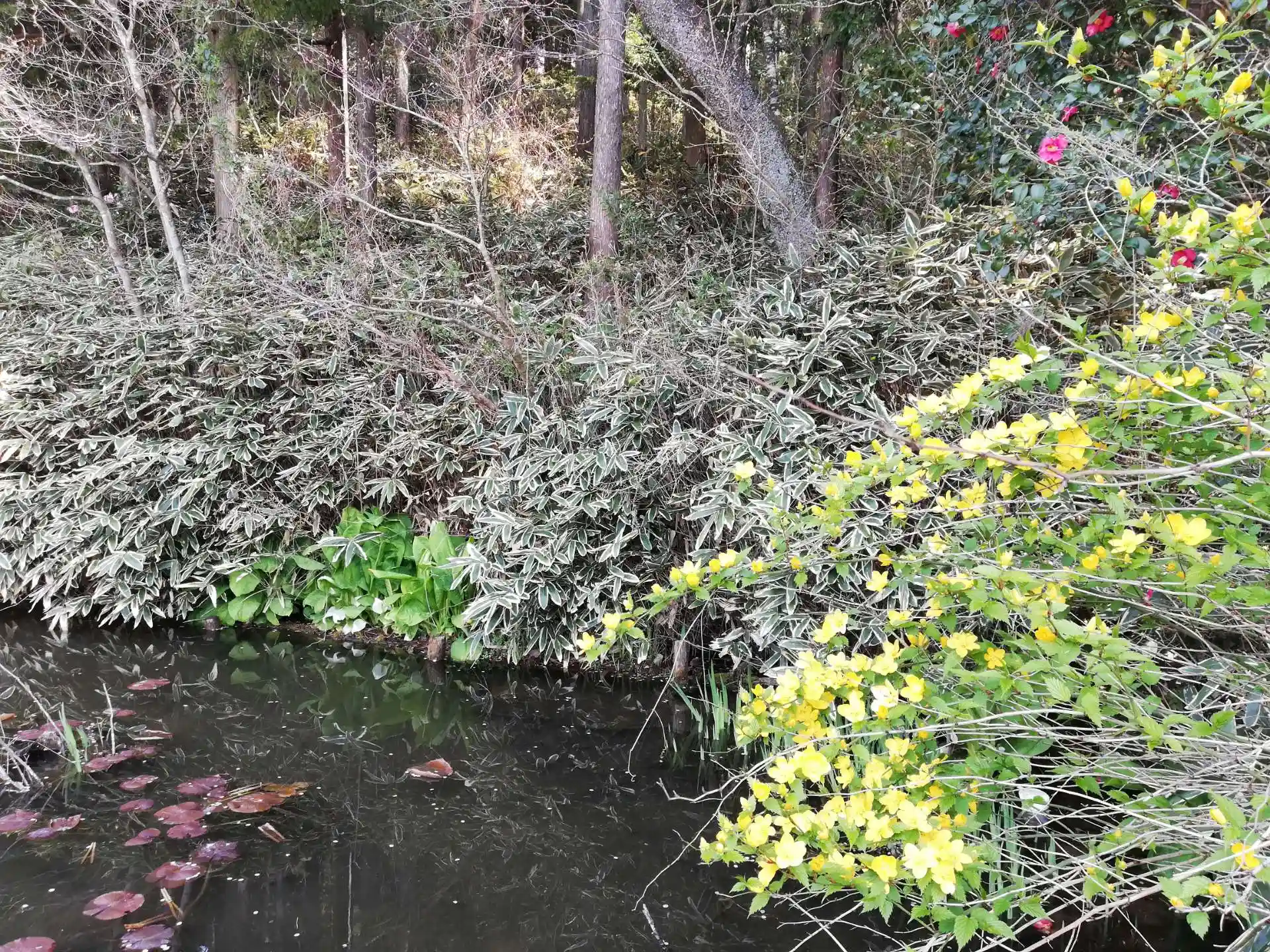 睡蓮の池。山吹、椿、水芭蕉が綺麗です。