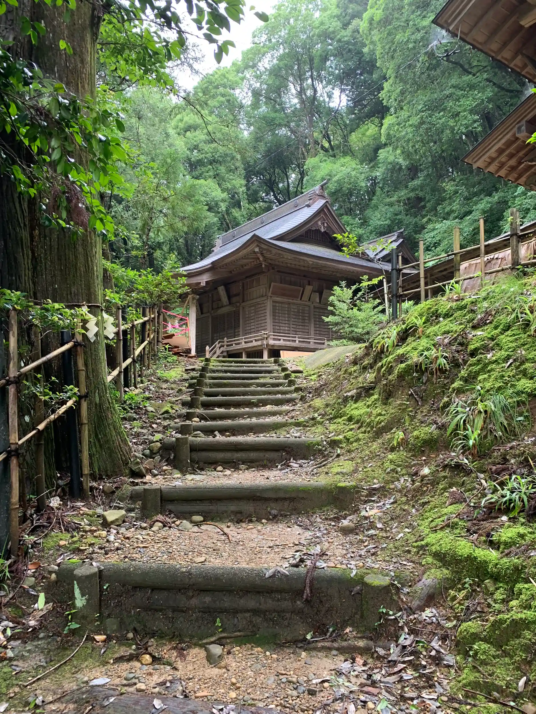 雨乞い信仰で通称「鳴井山」と呼ばれ、多くの参拝者もあったようですが、入り口の石段は封鎖され、境内には濡れた畳や切った木材が放置されていて、ちょっと寂しい感がありました。