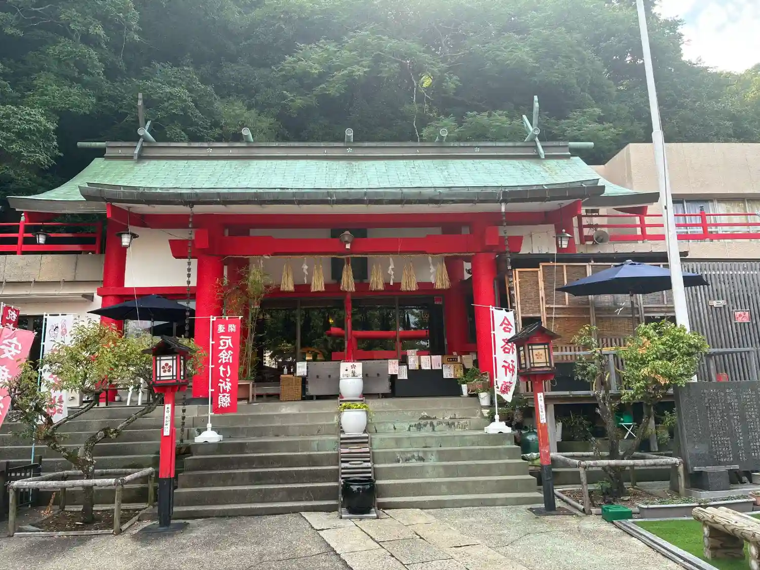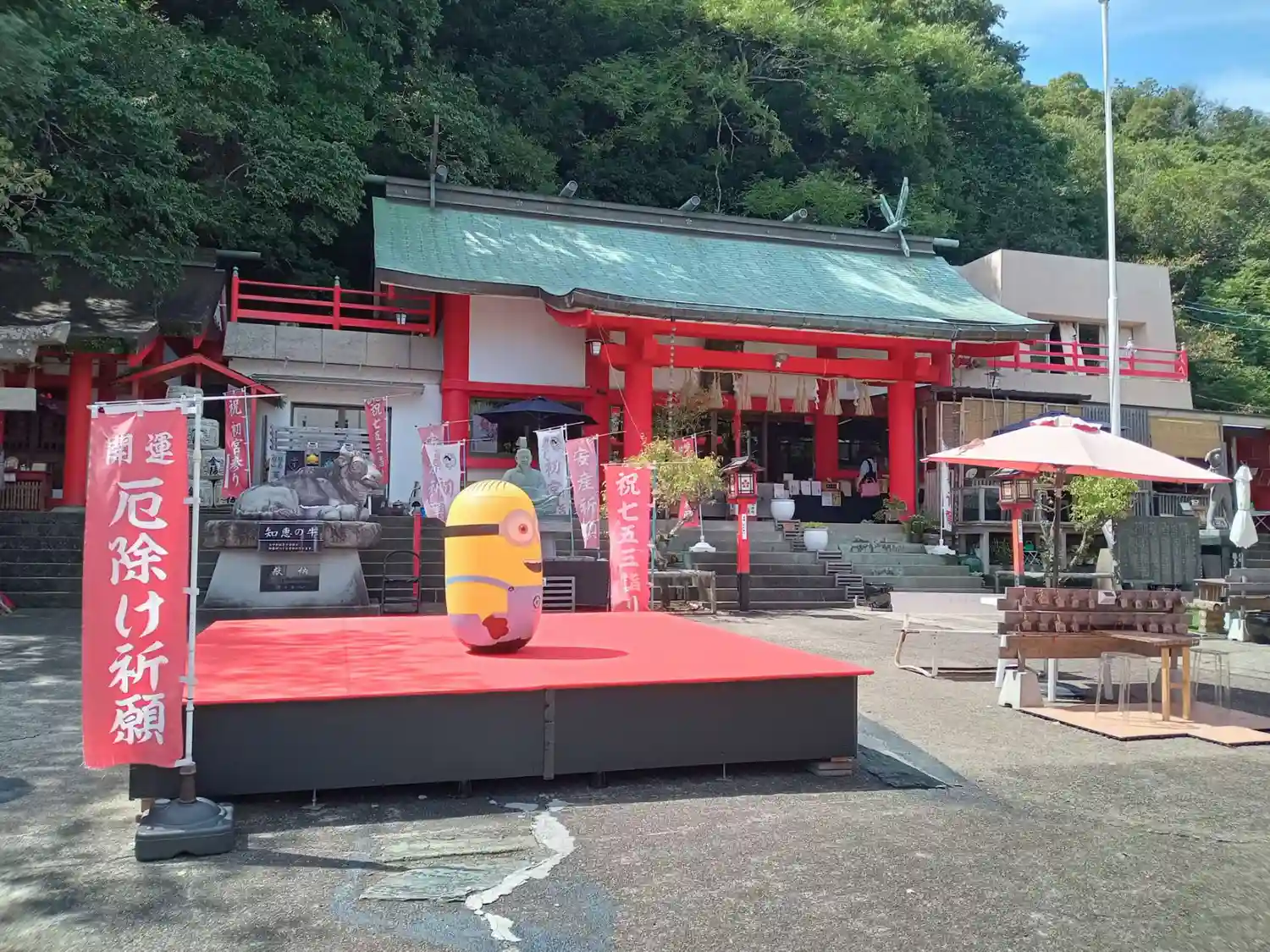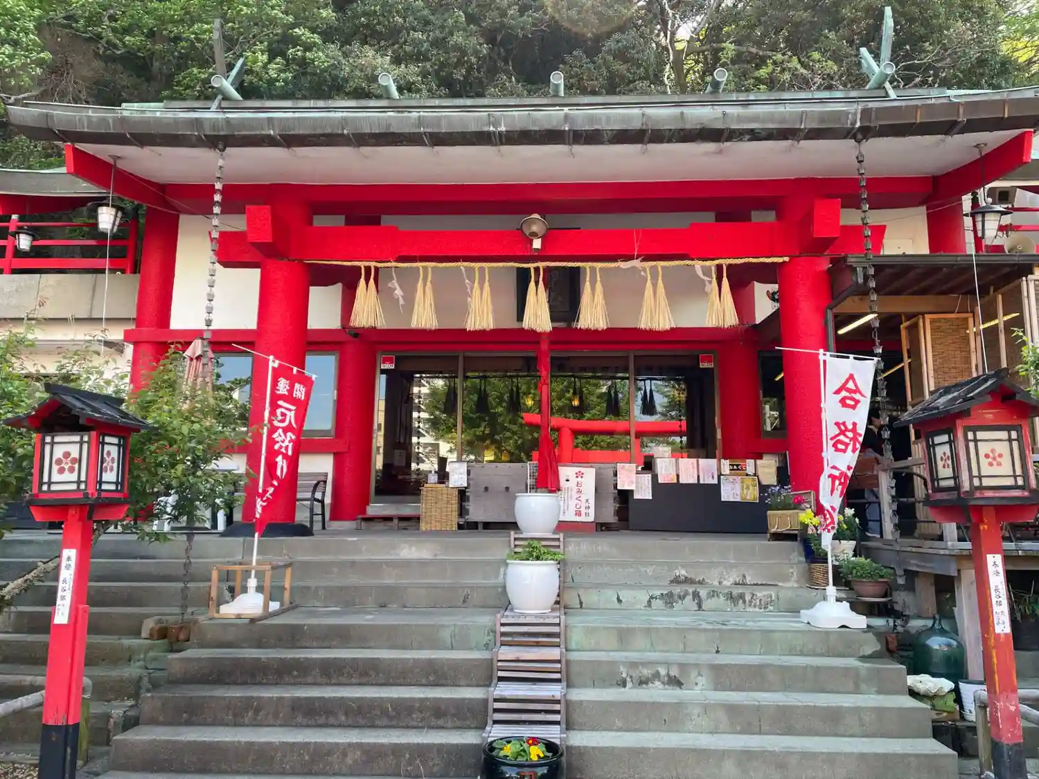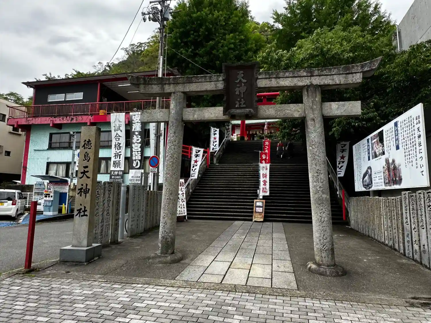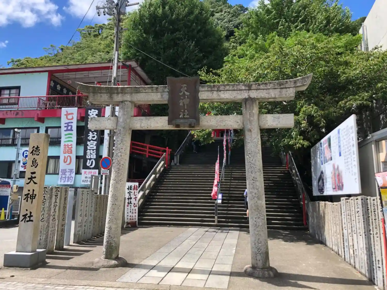 徳島県阿波踊り会館横にある眉山天神社に参拝に行って来ました。連休に当たるため参拝客は沢山いました。…