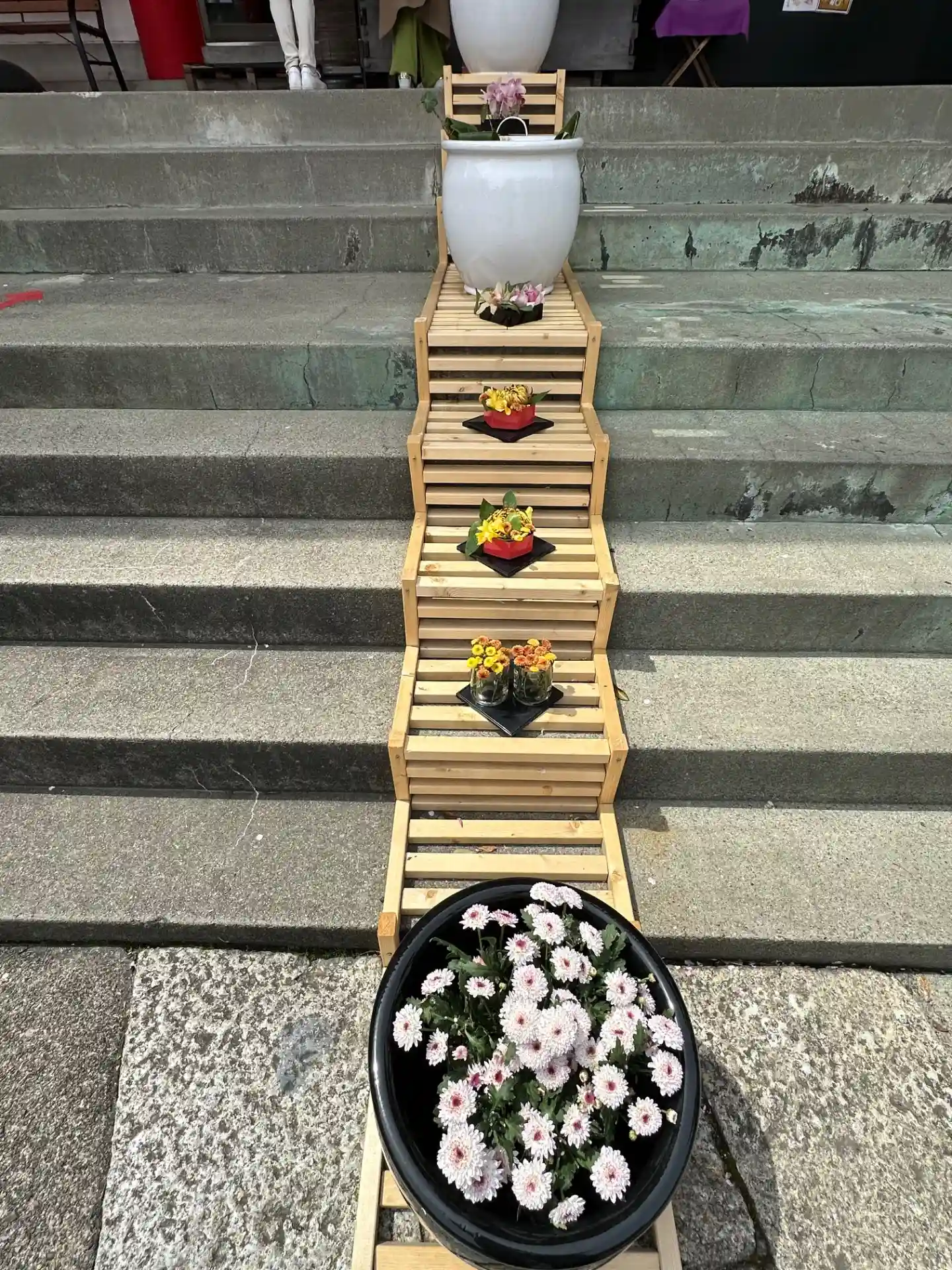 女性の厄払い階段前