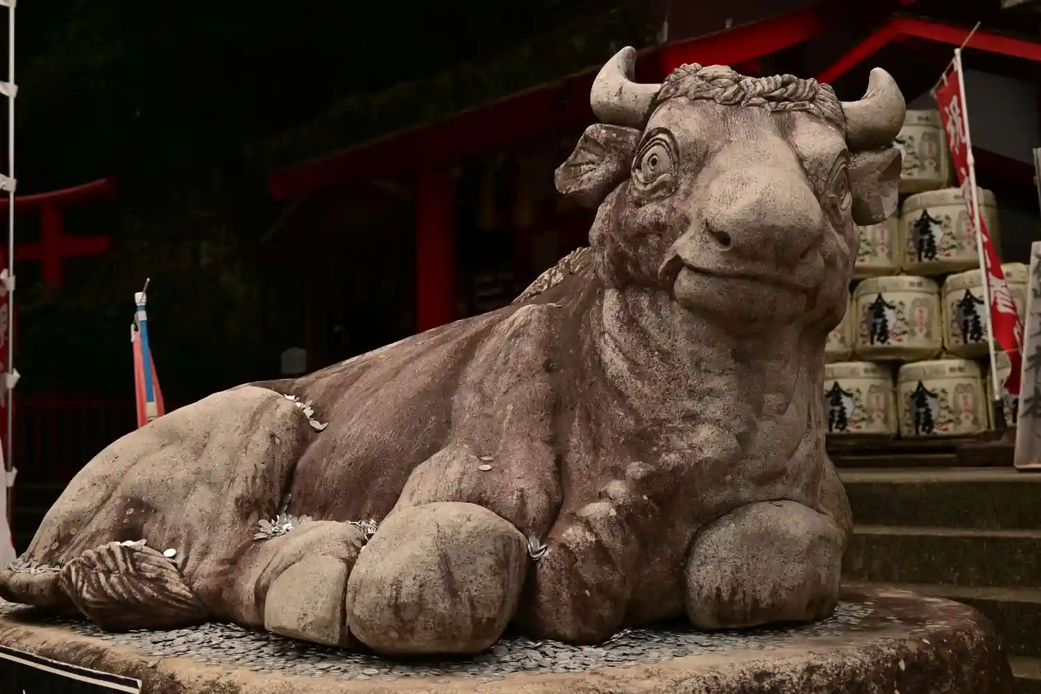 天神さんのシンボルの牛さんが鎮座してます。