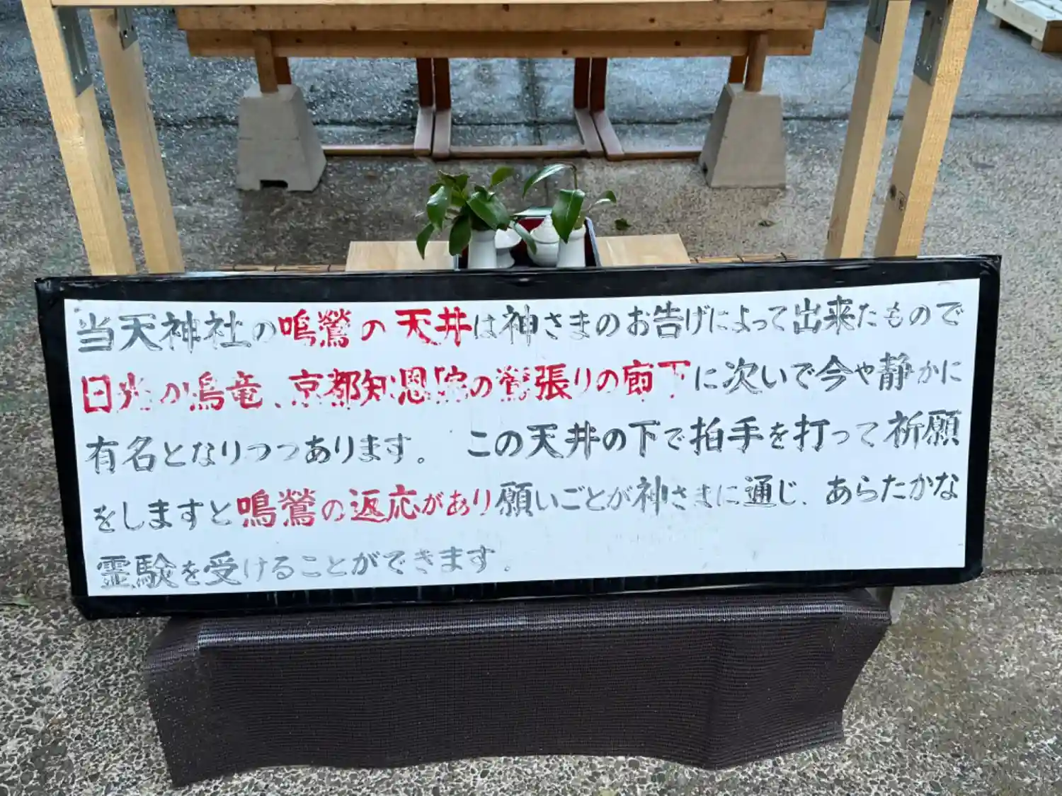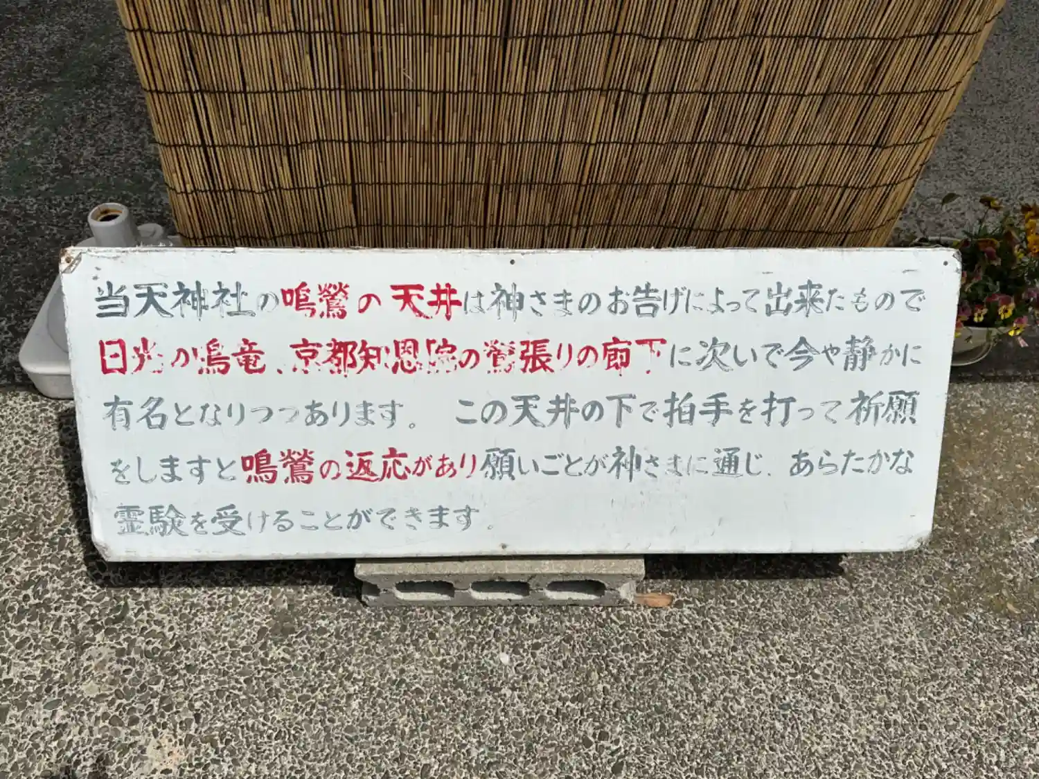 鳴鶯の天井の由緒書き