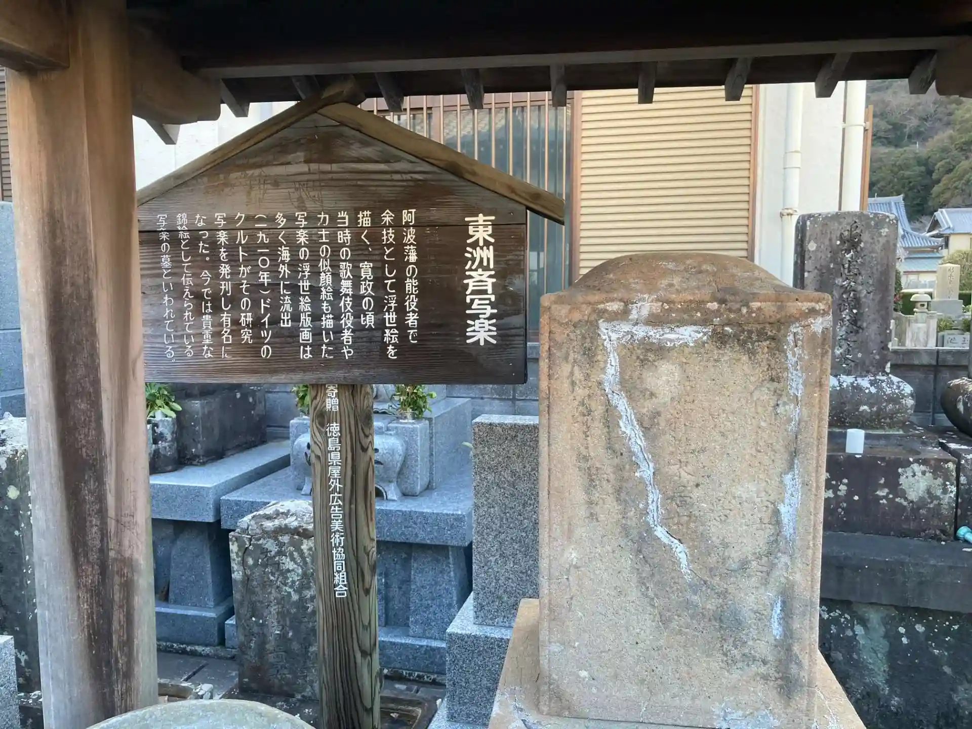 こちらには江戸時代に浮世絵師として活躍した東洲斎写楽の墓と伝えられる墓石があります。