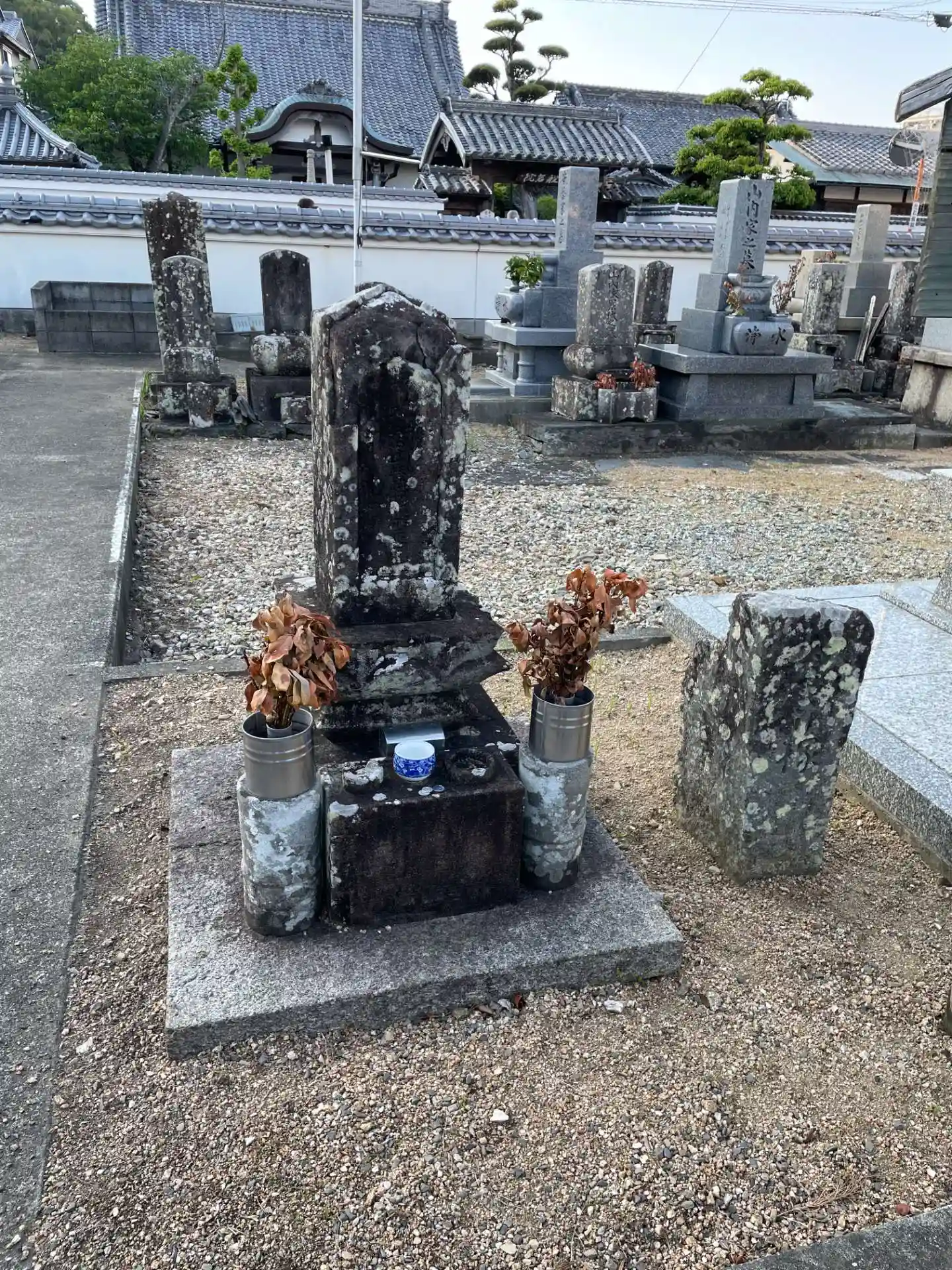 墓所のいちばん手前に碑がありました。その前に古いお墓があり これが夕霧さんのお墓だと思います。