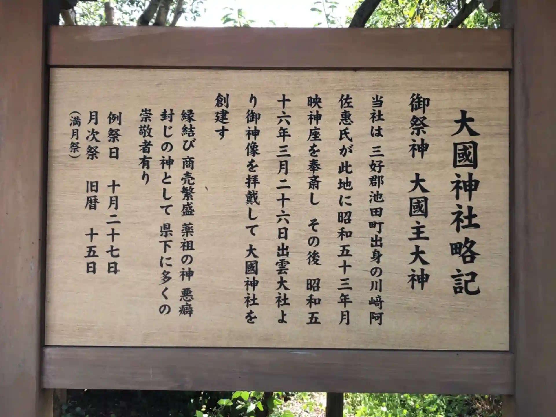 大国神社由緒書き。