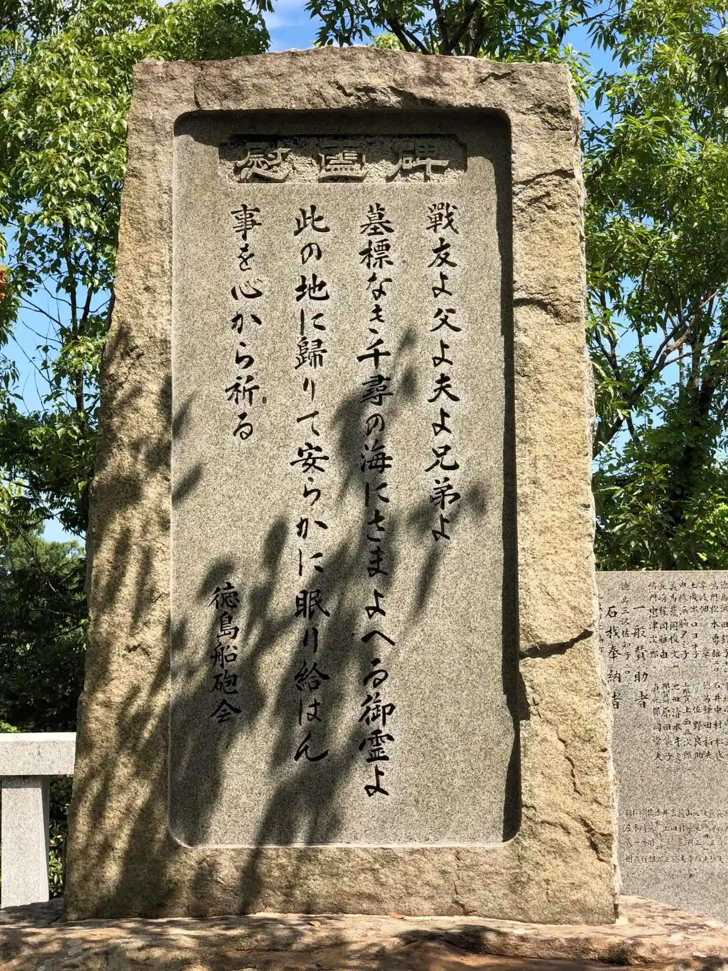 海軍戦没者慰霊碑。この文字は元内閣総理大臣の中曽根康弘さんの字だそうです。