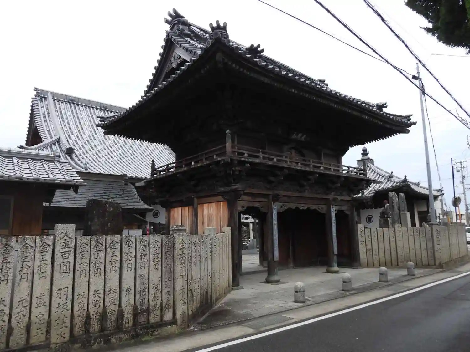 道路の幅に比して山門が大きく、うまく全…