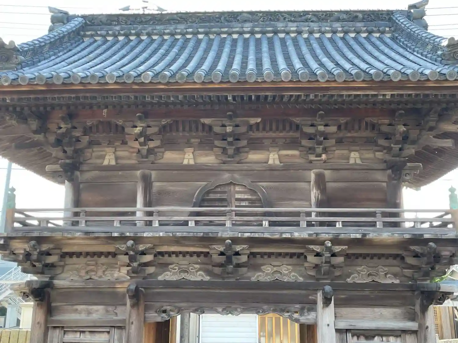 和洋重層の鐘楼門で、かつての栄華を伝える重厚な造り。