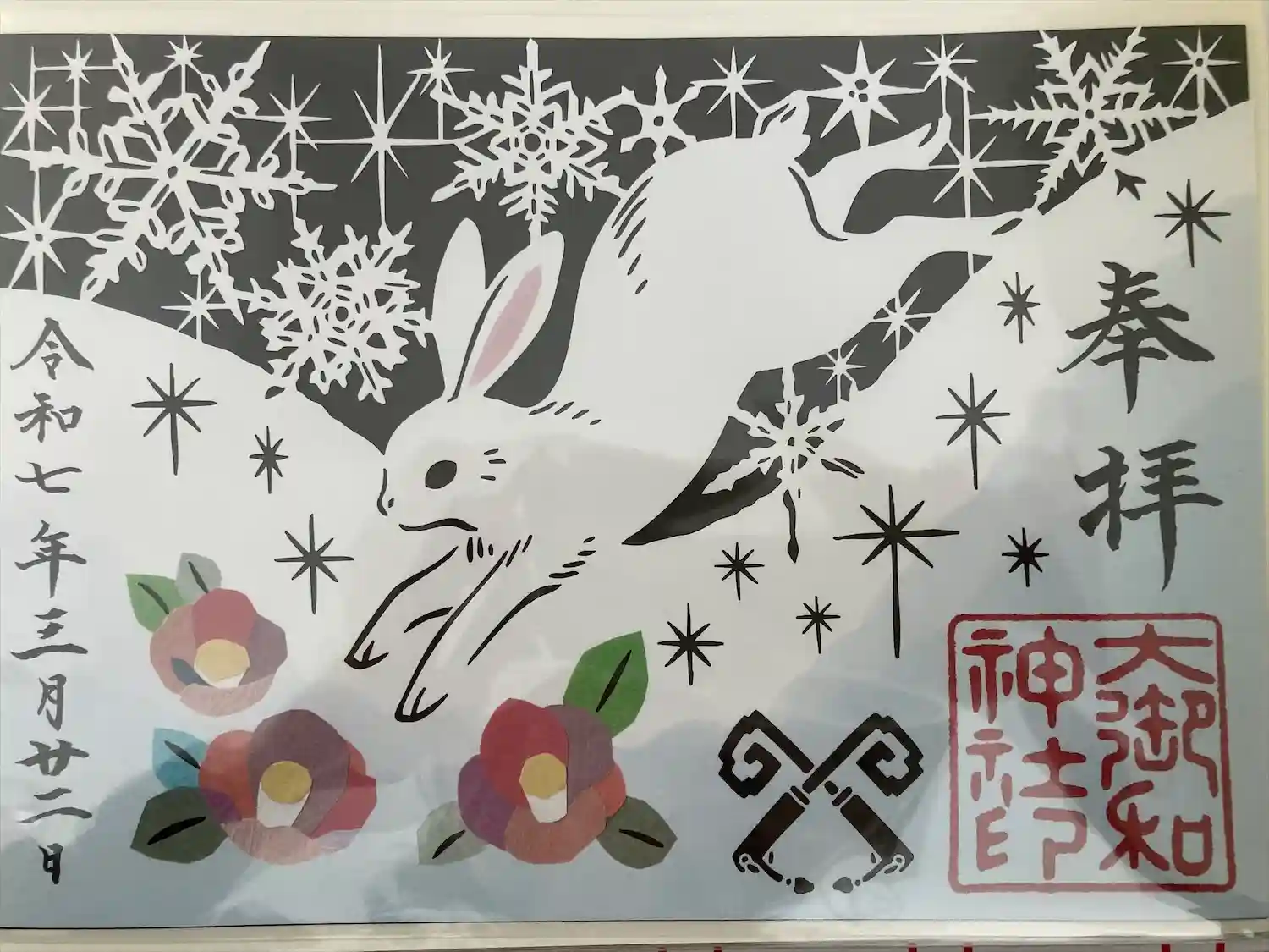 ファイル型の御朱印帳と切り絵の御朱印を頂きました。