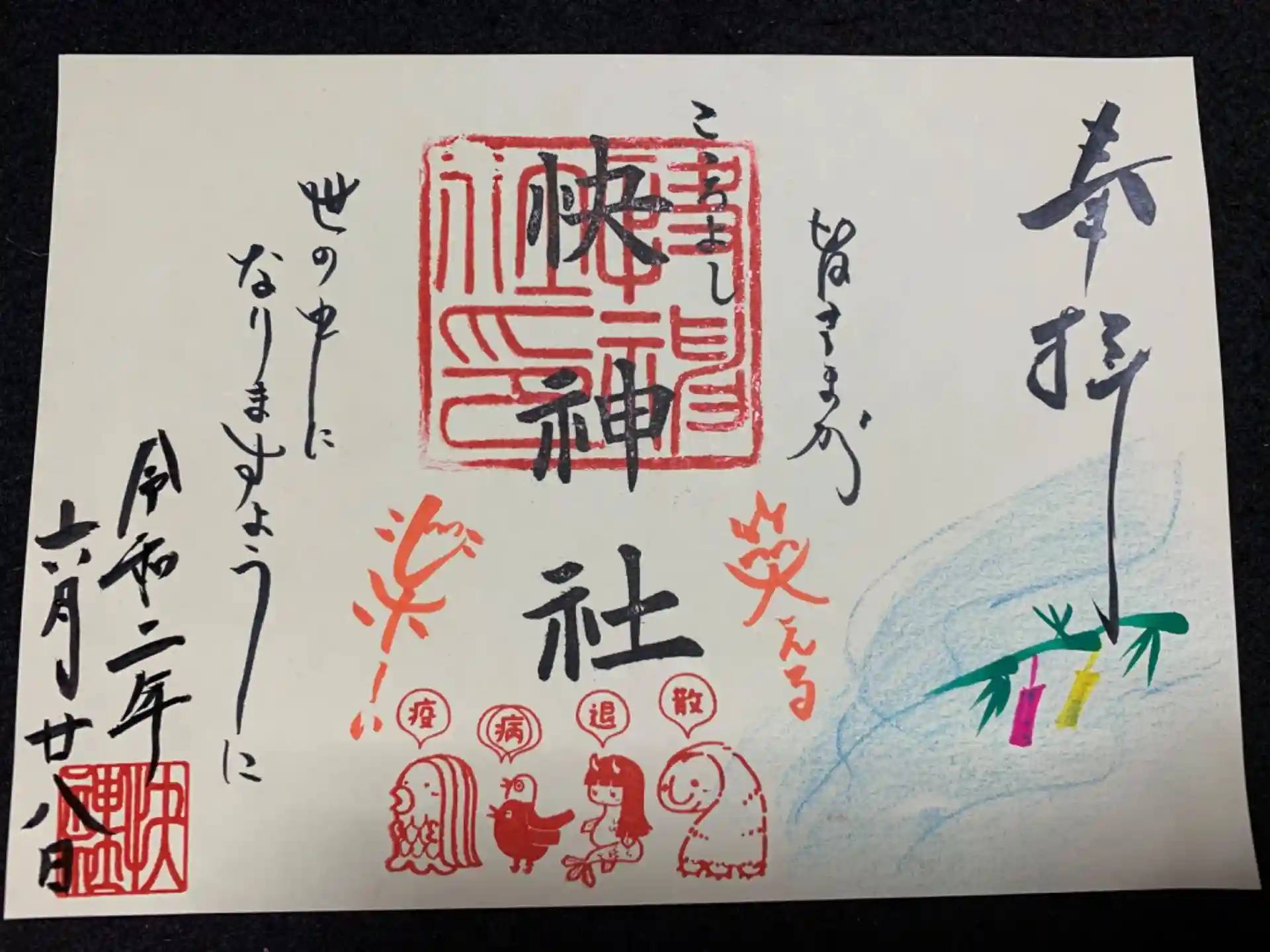 今月の見開き御朱印は、七夕まつり🎋でかわいいですね😊❗️