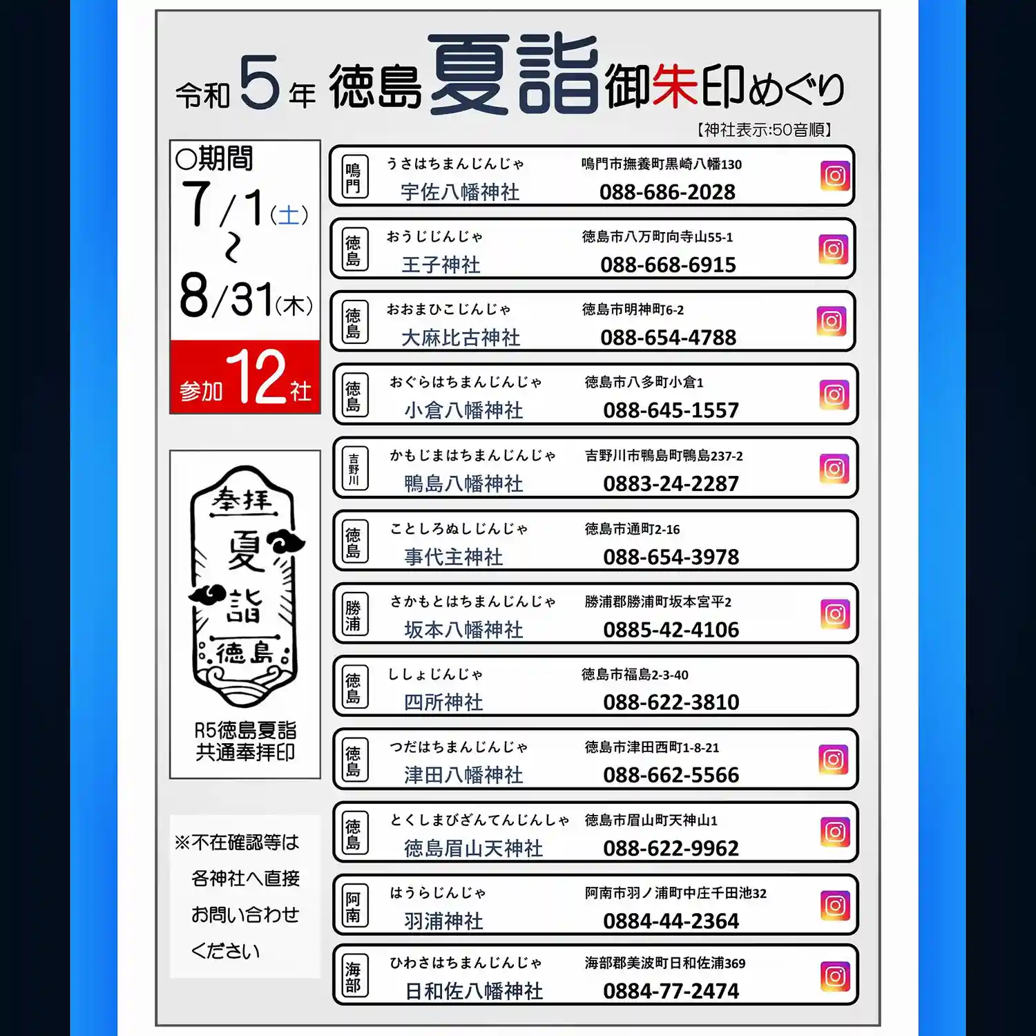 昨年に続き、12社で共通の夏詣印を捺印いたします。