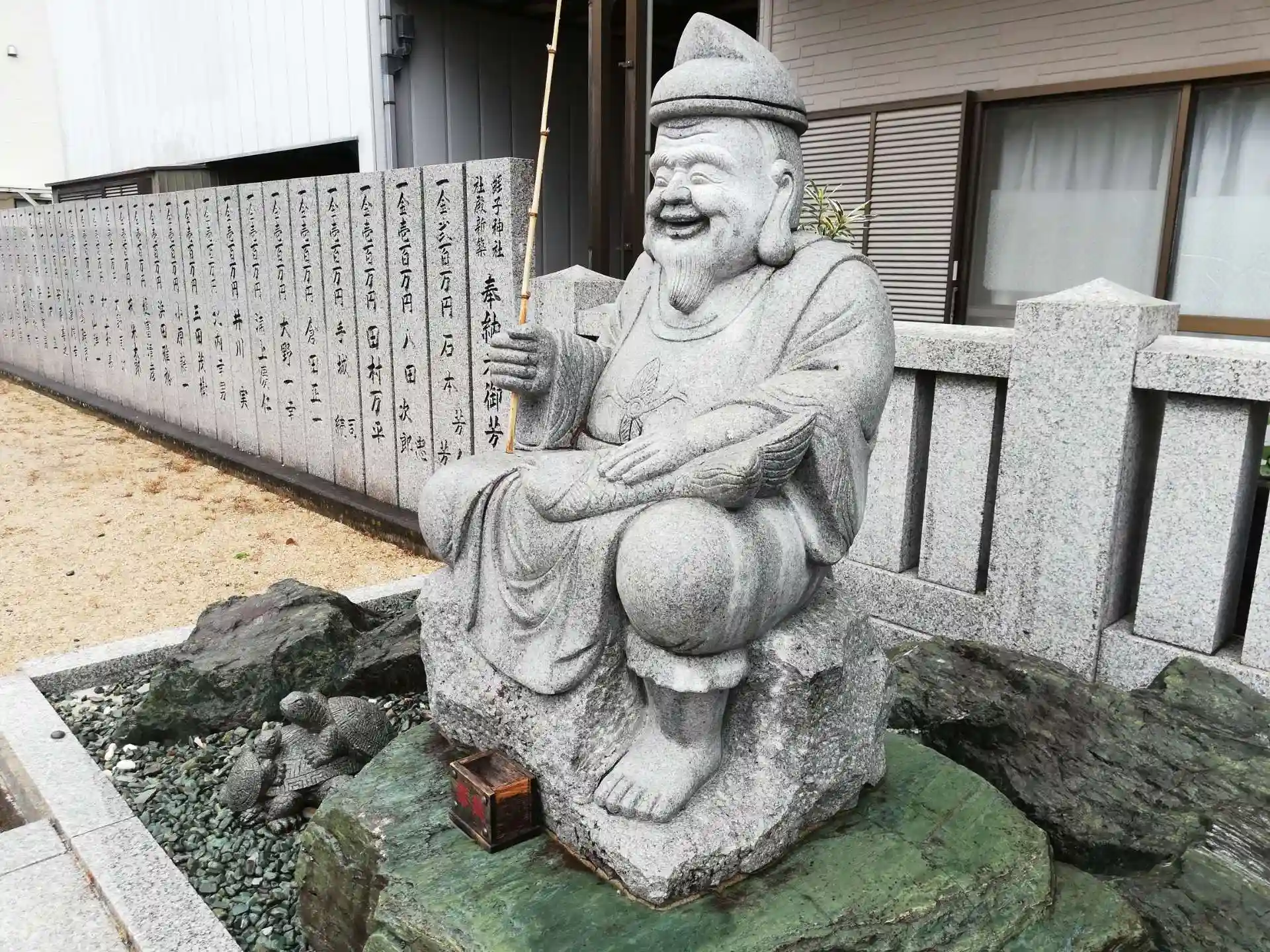 えびす像の脇に亀の石像があります。