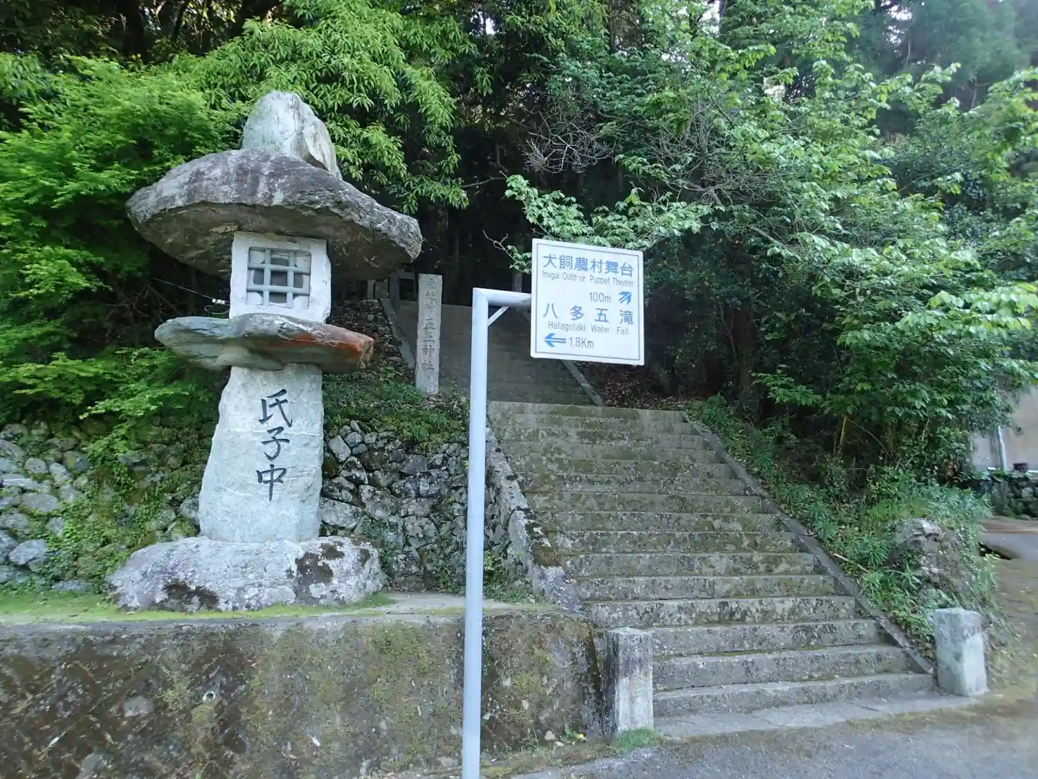 江戸時代にこの地方で楽しまれていたという「阿波人形浄瑠璃」のための能舞台が境内にあります。「犬飼農…