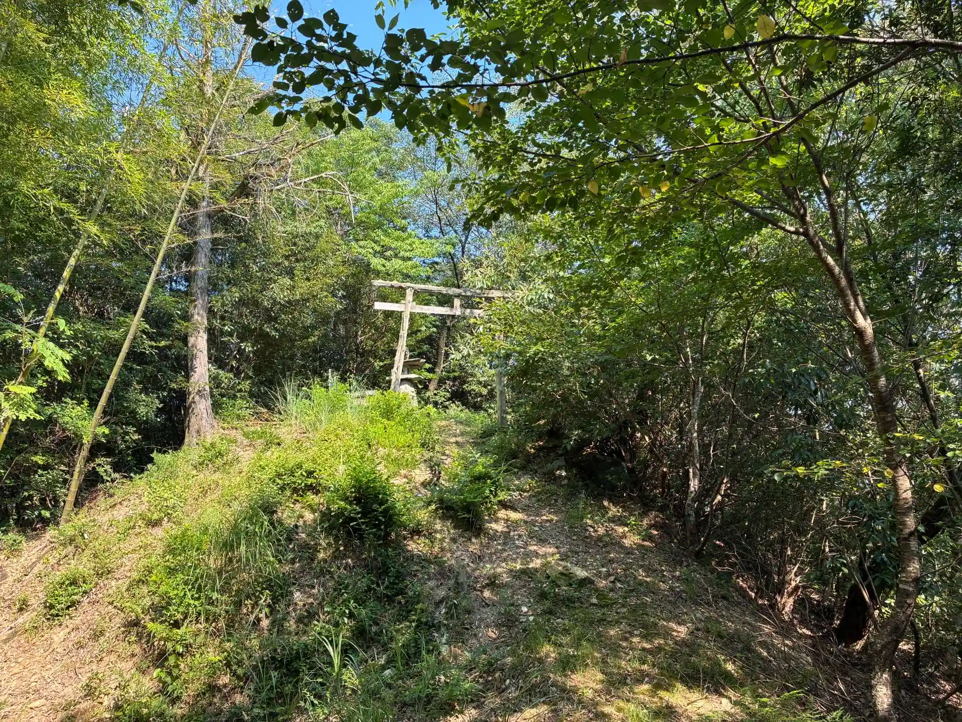 後でわかったことですが、神社の裏の方にコンクリートの道路が通ってますのでそちらから来たほうがましだと思います。(そちらも少し険しいですが・・・。)
