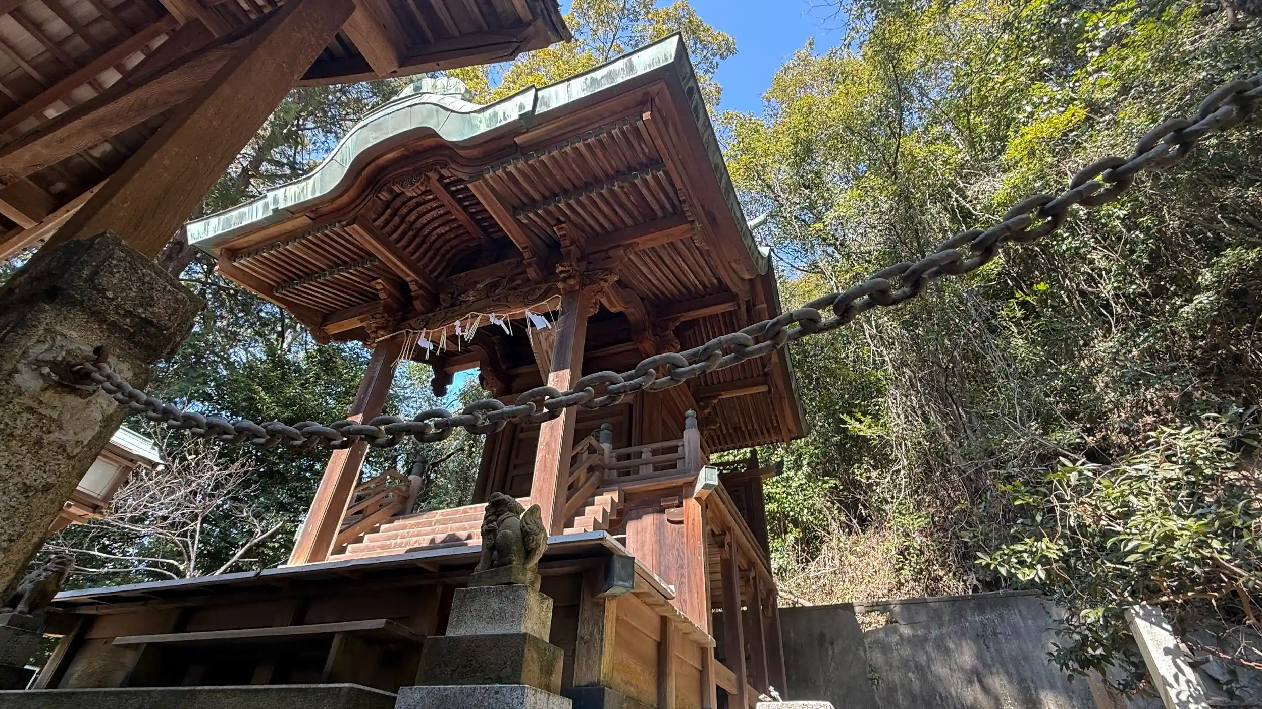 主祭神 應神天皇。高島八幡神社とも呼ばれているようです、山の中腹に鎮座されています、一の鳥居より参道を進むと、階段があり途中に二の鳥居がありさらに上がると左に拝殿があります 拝殿には「高島八幡神社 令和の大改修 募金のお願い」という張り紙がありました。拝殿周りにはロープが張ってあり、老朽化が進んでいるため立ち入り禁止なのかと 境内はとても綺麗にしてあります、少しの気持ちをお賽銭に入れておきました。
