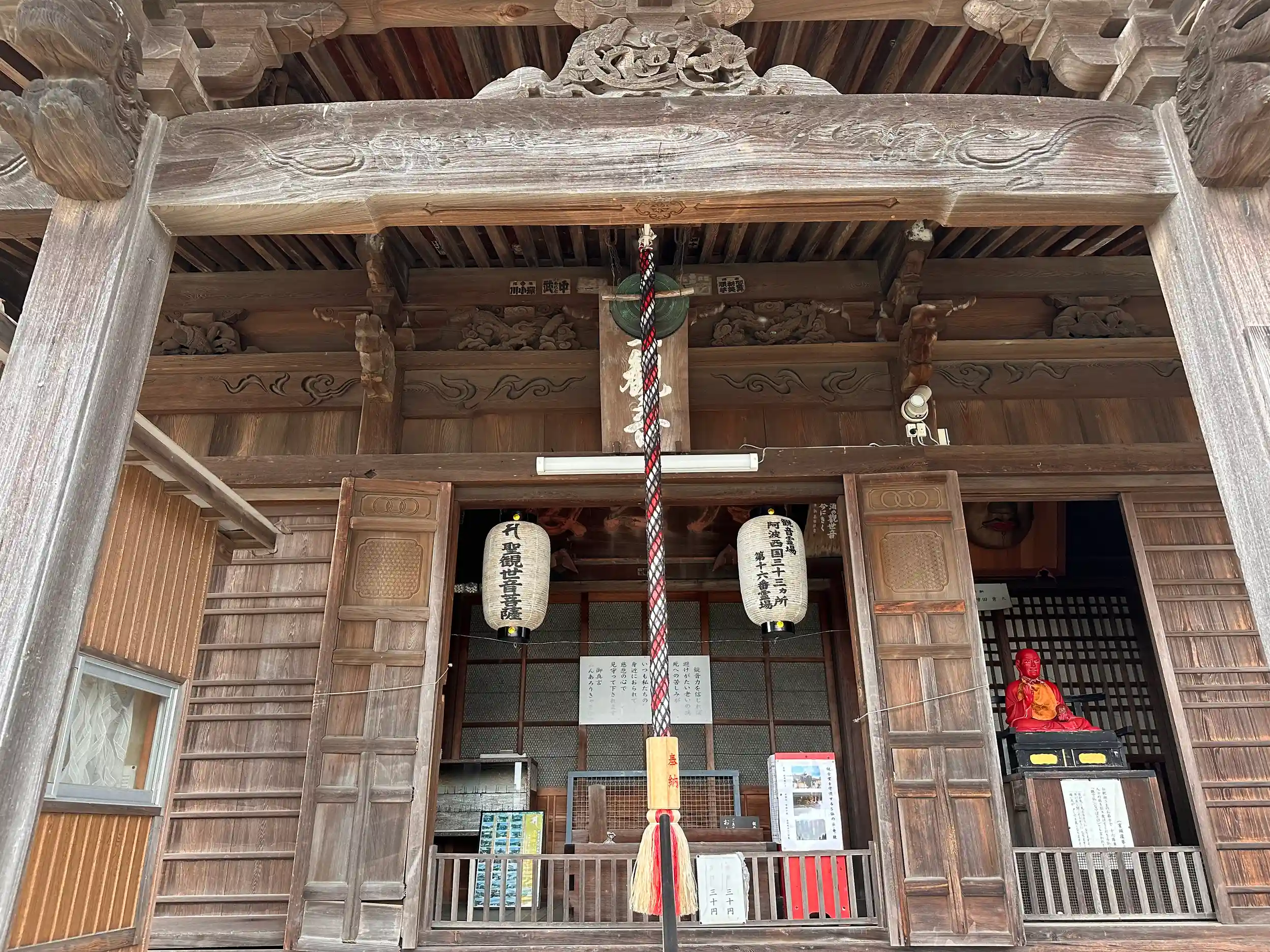 高野山真言宗の寺院。山号は神応山、本尊は大日如来、阿波西国三十三観音霊場16番札所。可愛い弘法大師がいらっしゃいます