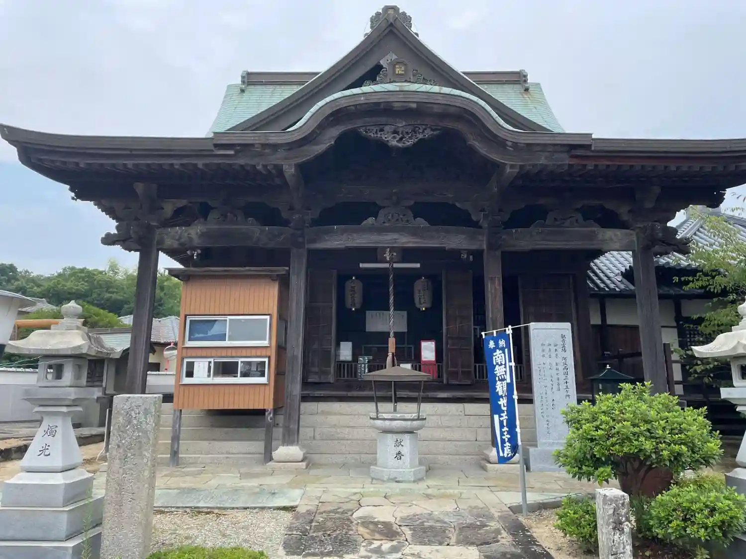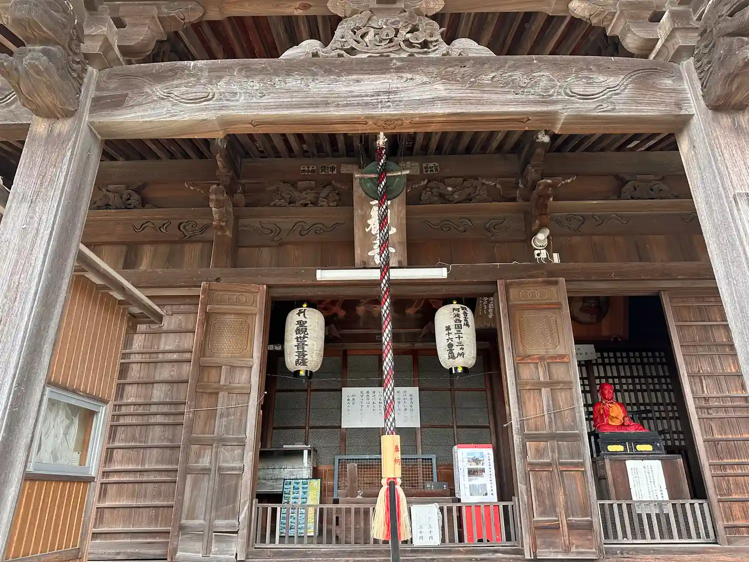 高野山真言宗の寺院。山号は神応山、本尊は大日如来、阿波西国三十三観音霊場16番札所。可愛い弘法大師…