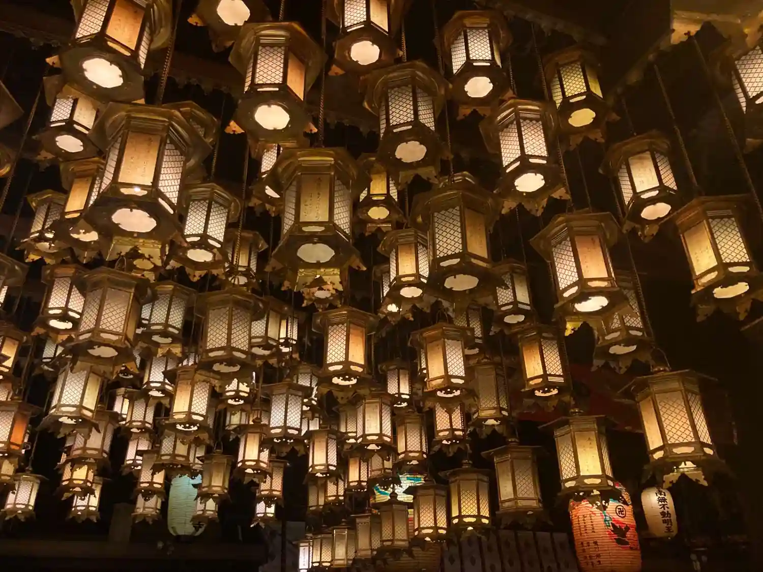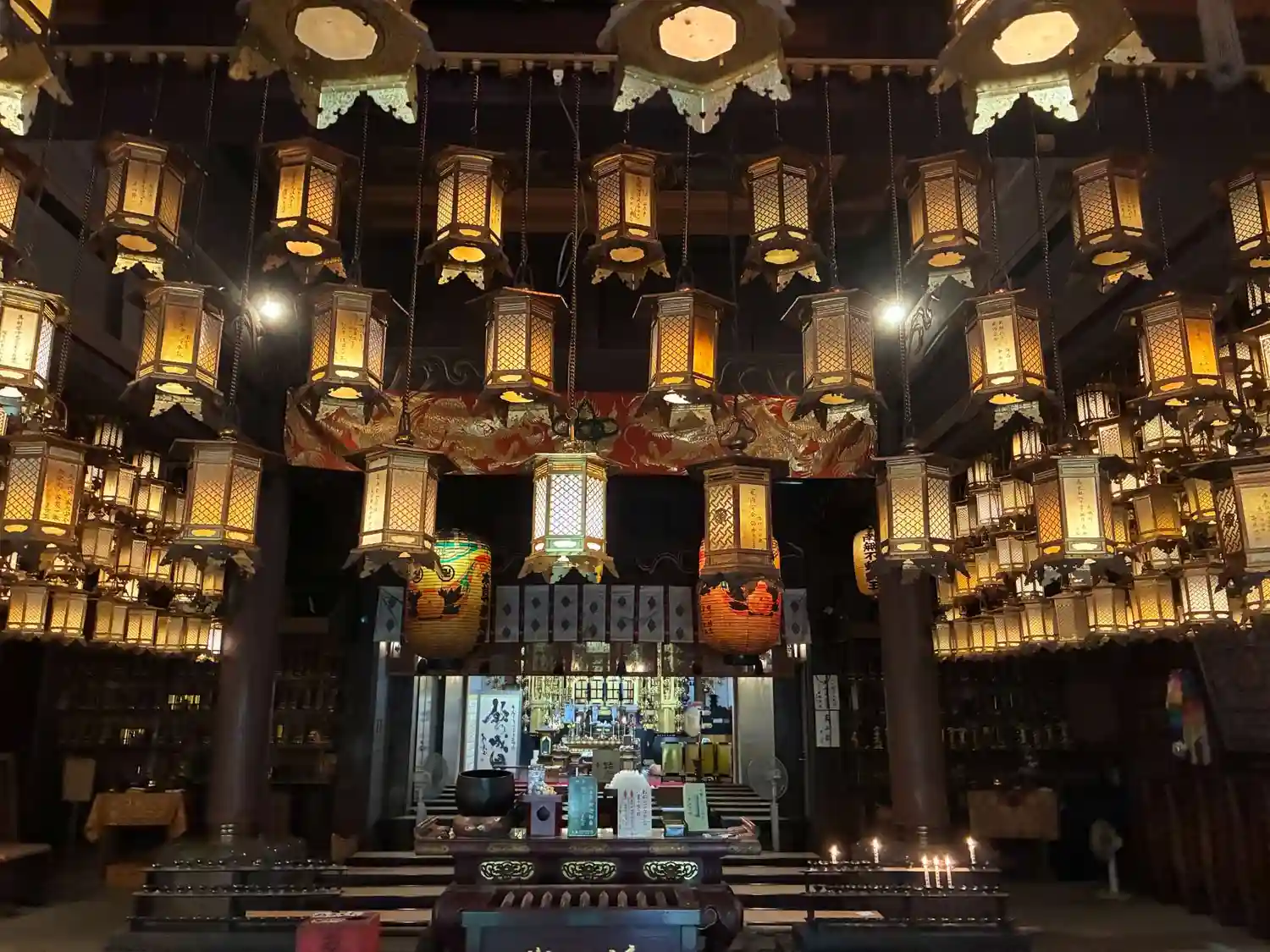 本堂を埋め尽くす燈籠は、荘厳な気持ちになります。