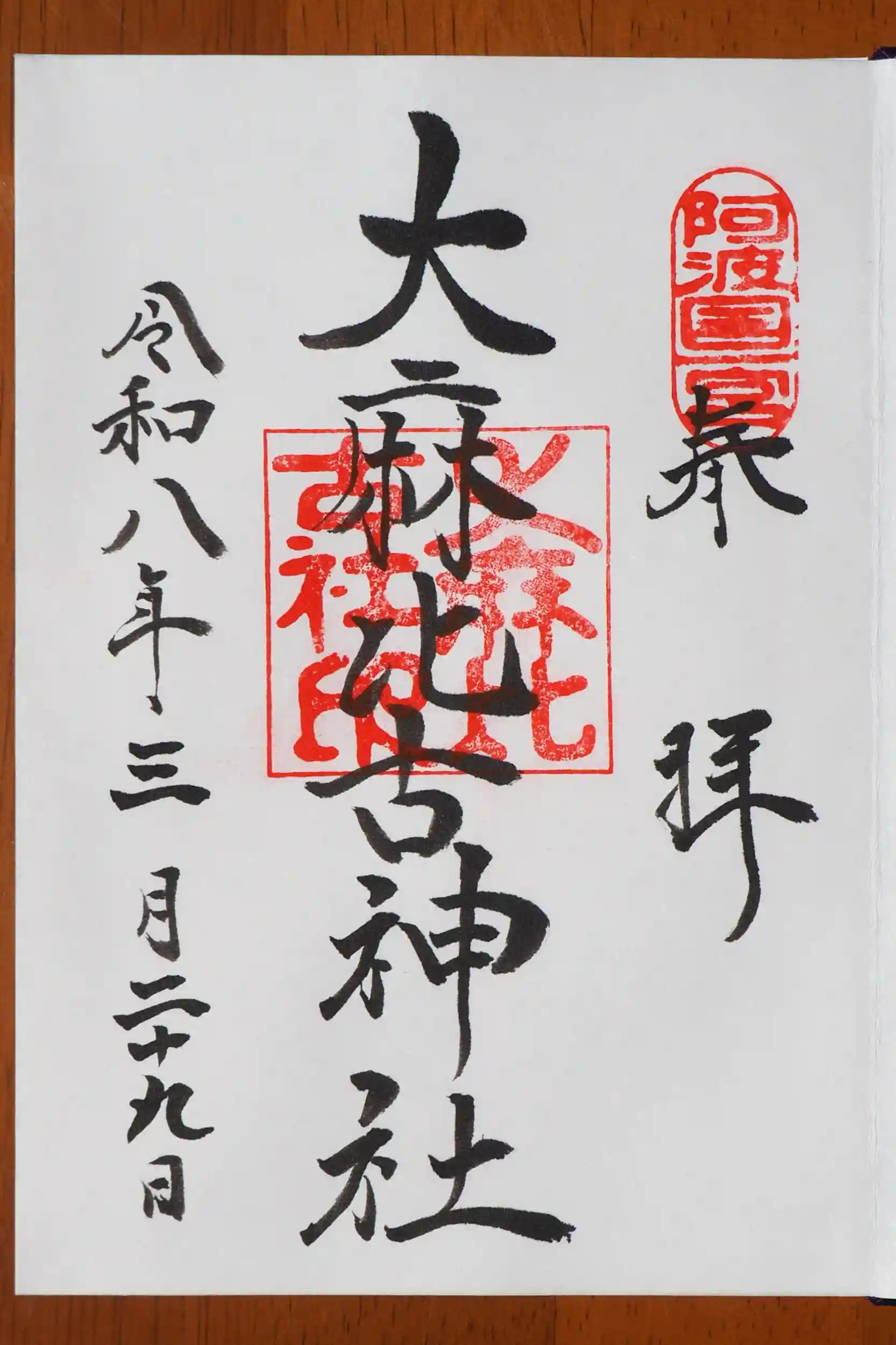 境内は広くてすっきりしてます。社殿は凄く綺麗、最近修復されたんでしょうか。四国上陸という事で御朱印帳購入、御朱印もふたつ含まれてました。