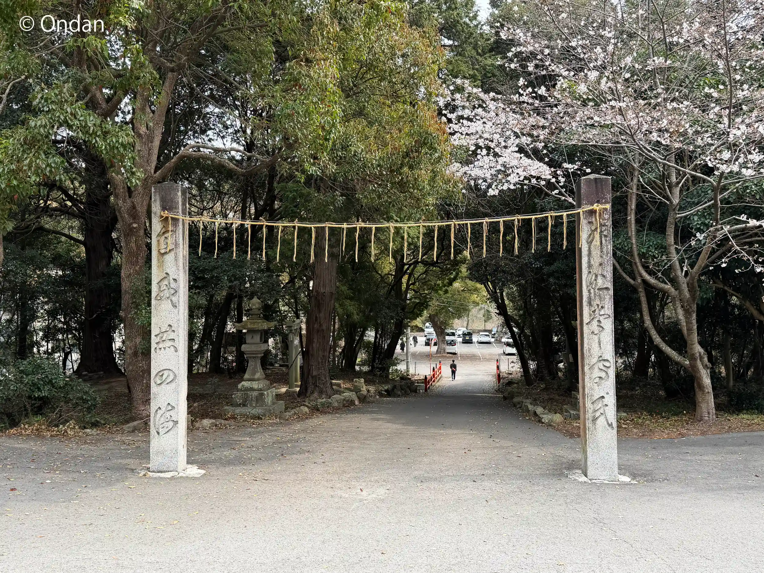 駐車場から入るとまず注連柱。
