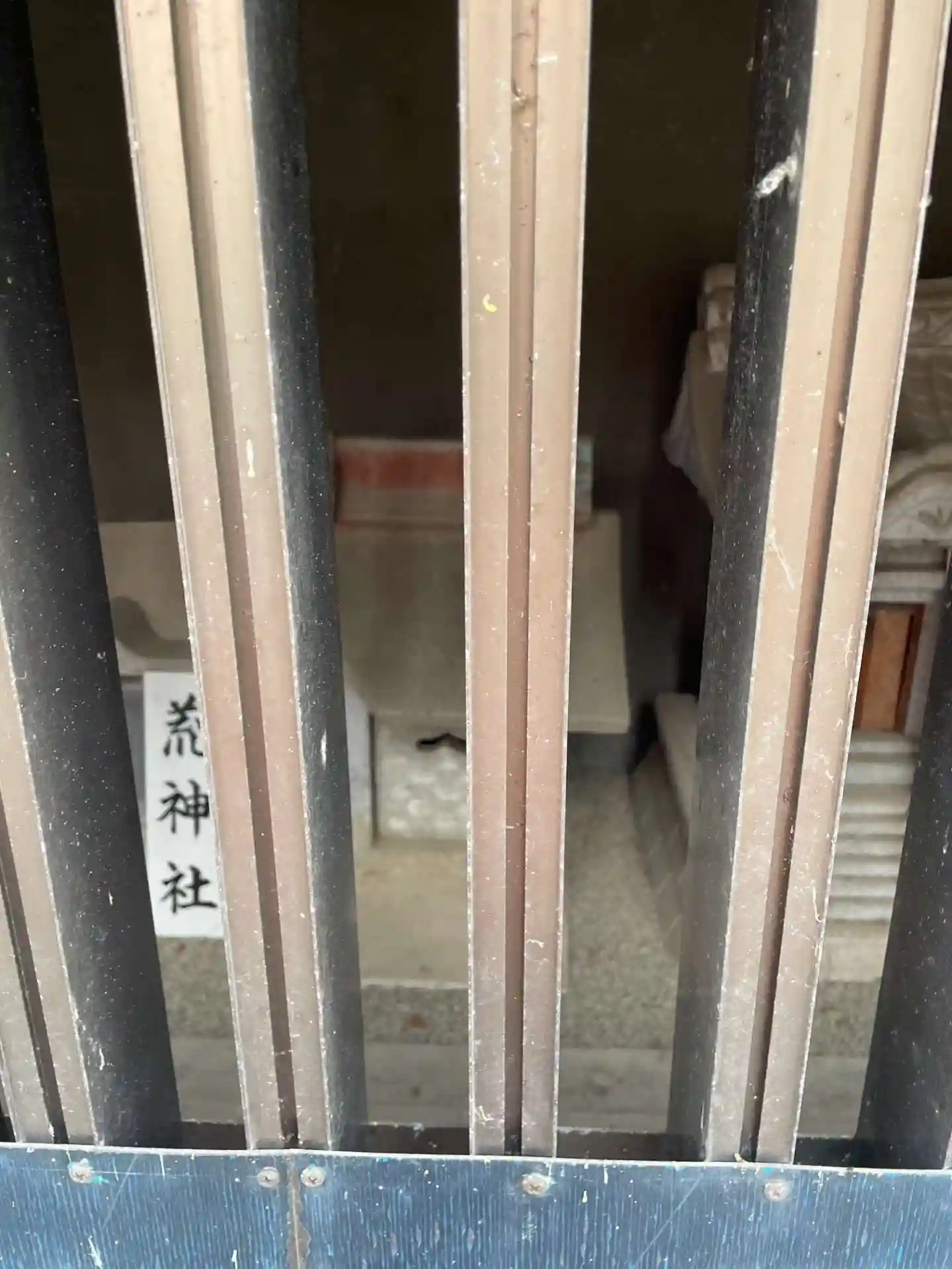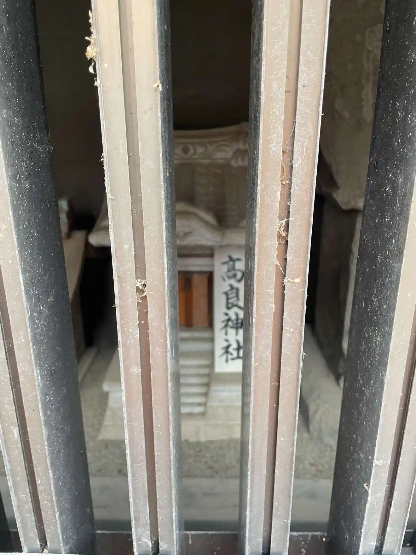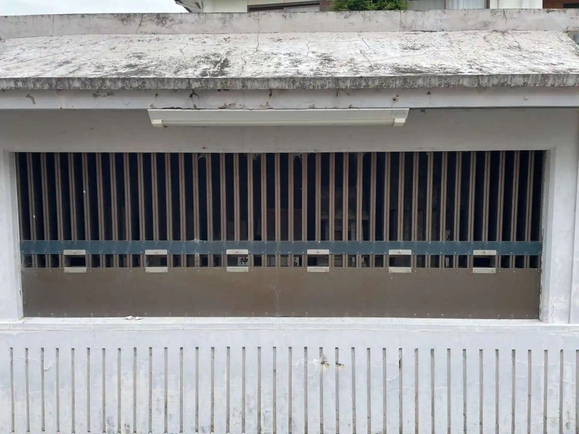 一見して境内社とは思えないような 白壁コンクリート製の檻のような建物がありました。