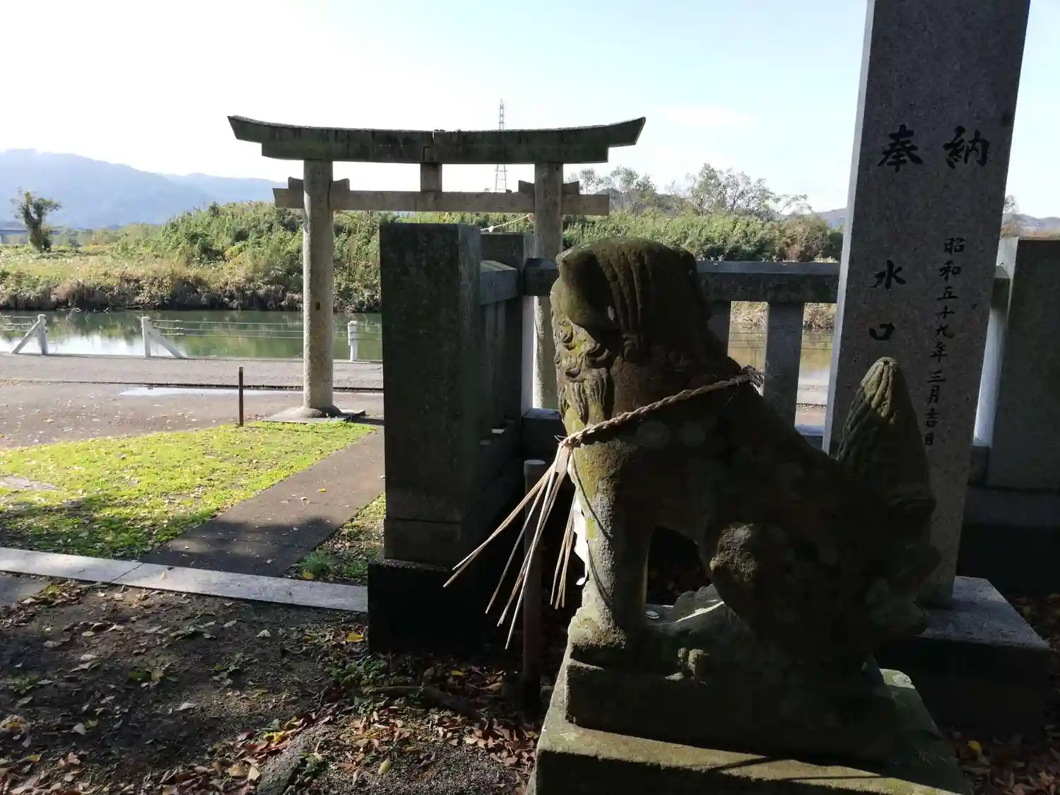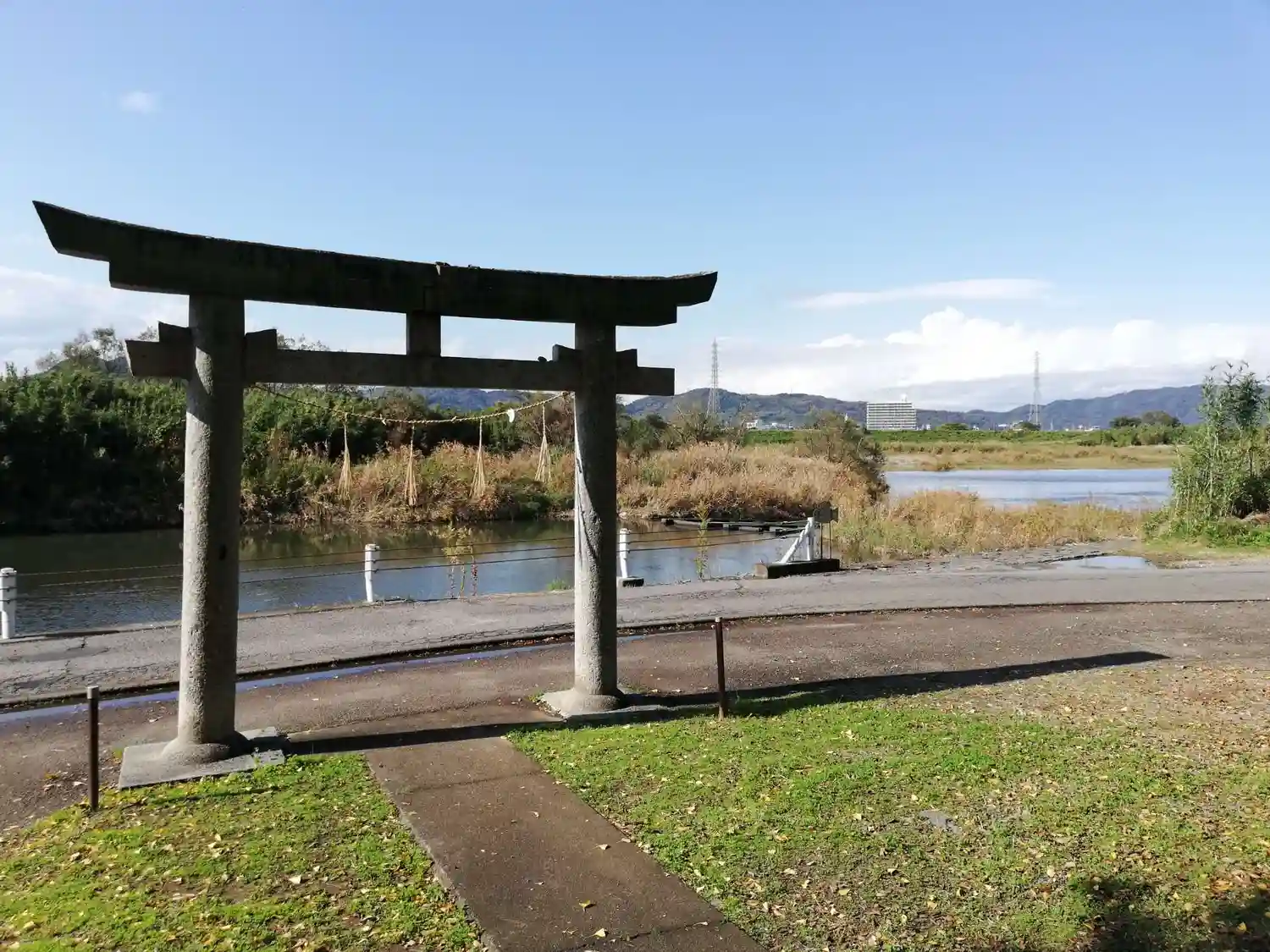 勝浦川と鳥居。