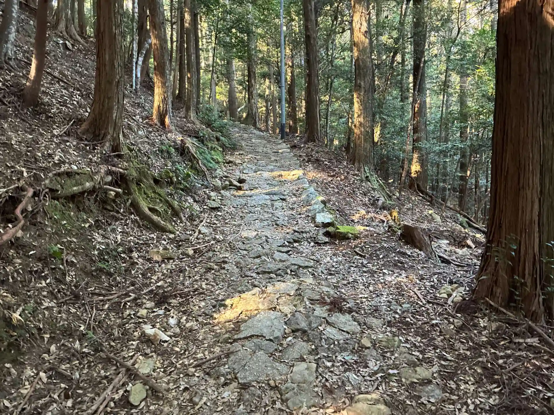 残り1kmを切ってくると石畳になってきます。風情はありますが・・・、正直歩きにくいです。