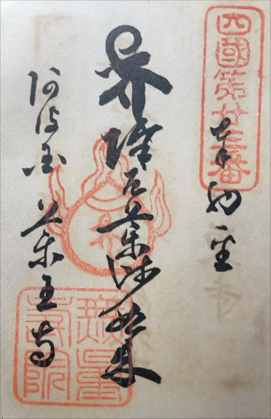 薬王寺は、厄除けの寺として全国的に知られ、お遍路さん以外の参拝者も数多く訪れる。寺は、第45代 聖武天皇(在位724-749)の勅願で、行基菩薩によって創建された。815(弘仁6)年、弘法大師(774-835)が42歳のとき自分と衆生の厄除け祈願のためここを訪れ、厄除薬師如来座像を彫って本尊としたという。1188(文治4)年には火災で堂宇が焼失し、第96代 後醍醐天皇(在位1318-1339)によって再建されている。