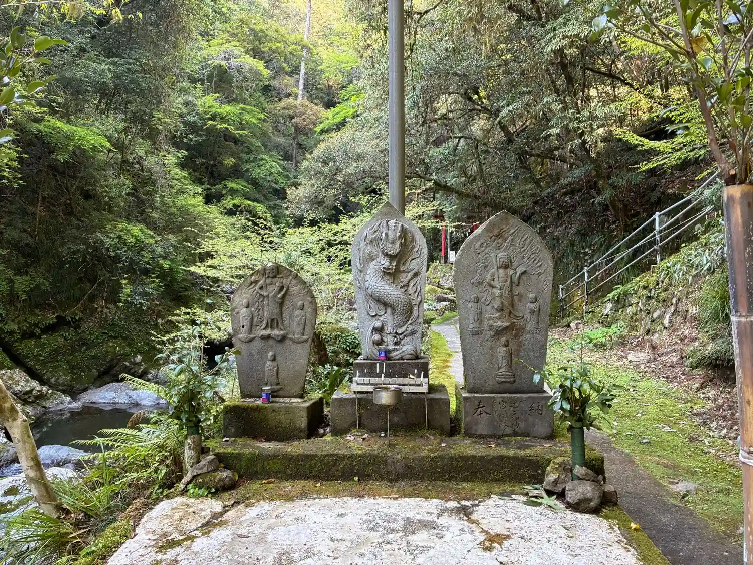 日が射し込むと2重に虹が浮かび上がり非常に神秘的。龍が現れそう。