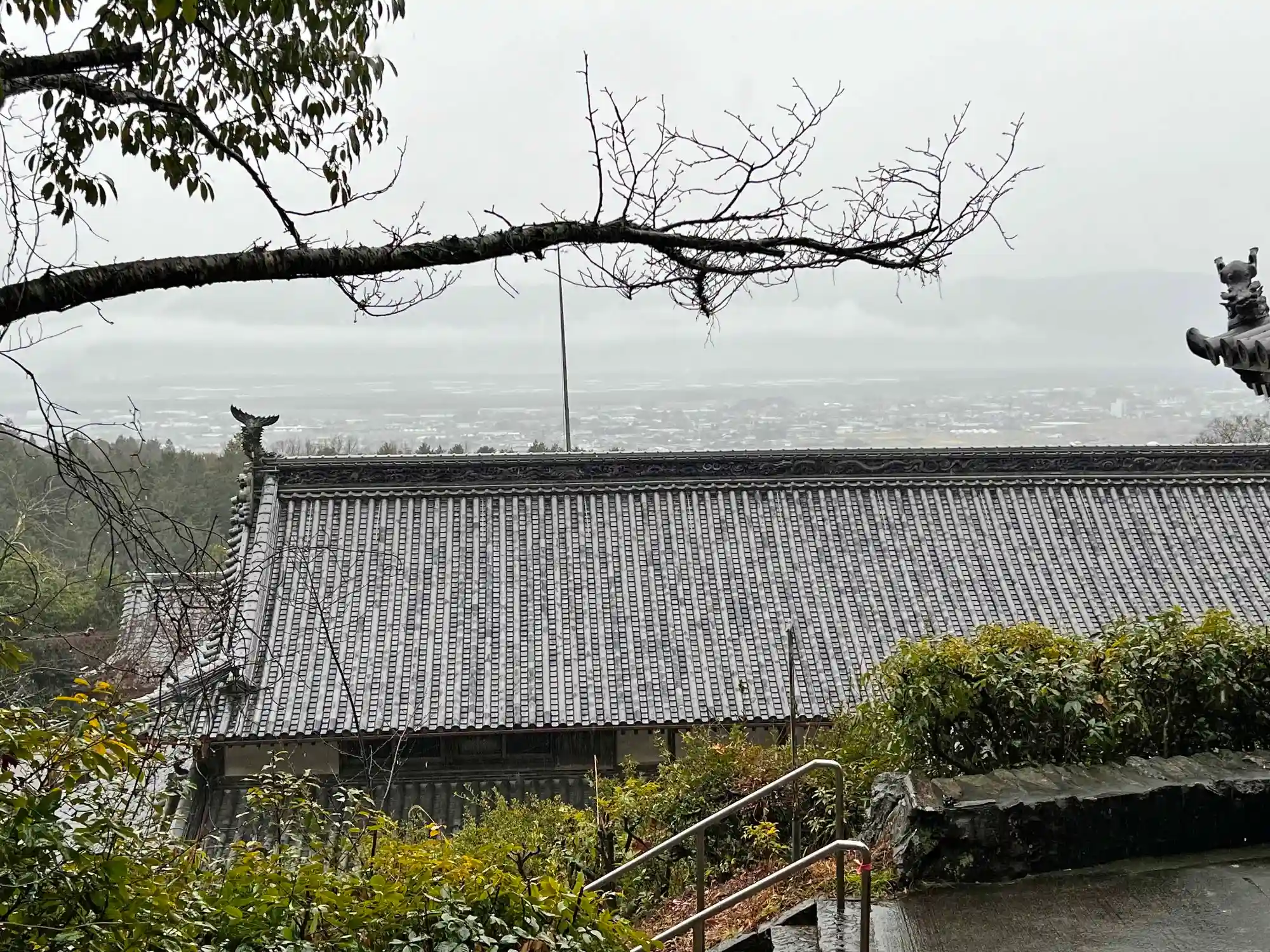 大塔から見た景色。屋根の向こうには、南側の吉野川流域平野部が広がっている。