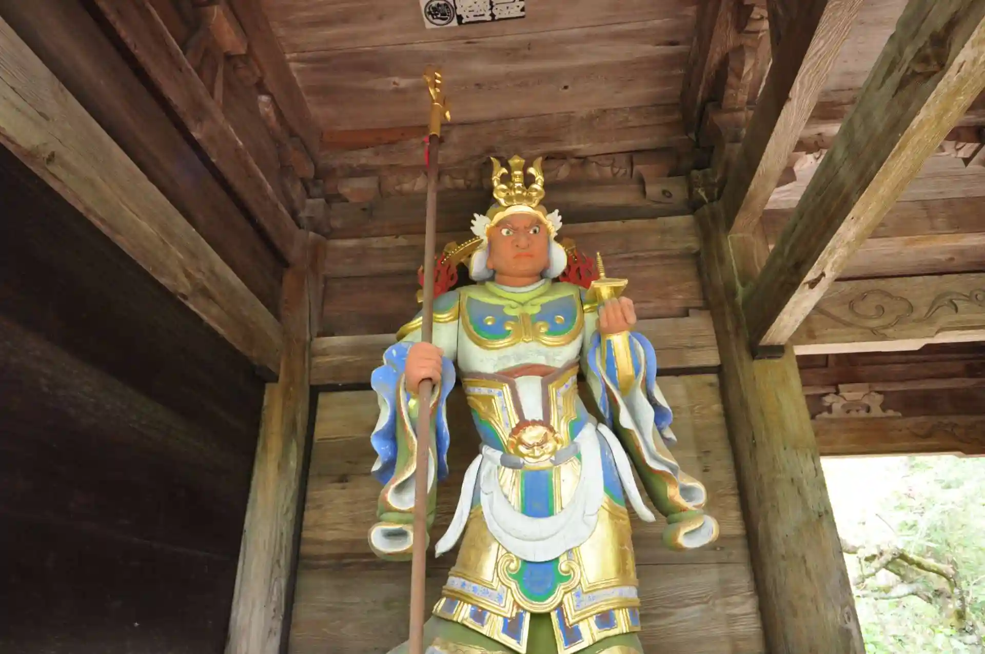 仁王門の2層目には極彩色(ごくさいしき)の天女の姿が描かれている。