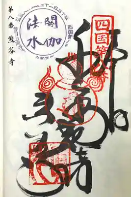 真ん中に千手観音、左下に熊谷寺と書かれ、右上に四国第八番の印、真ん中に梵字の印、左下に真光の印が押されています。 | |||