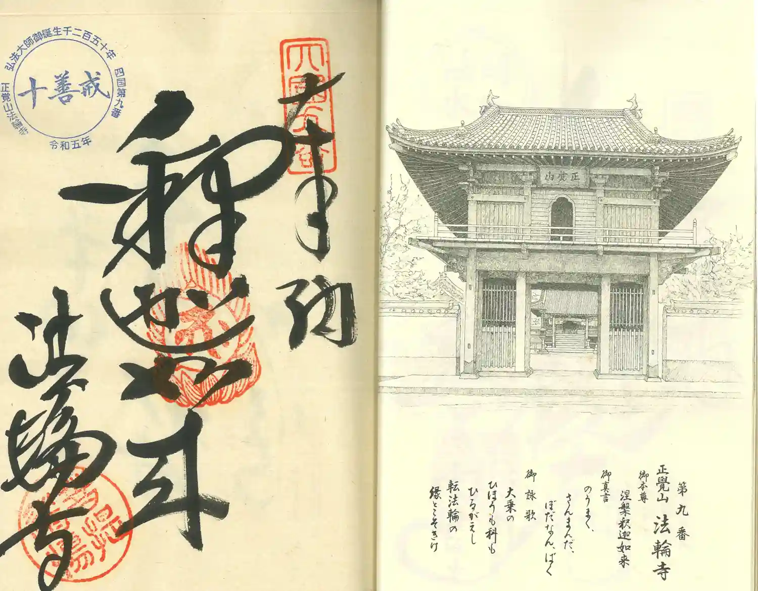 四国八十八箇所お遍路第9番札所。正覚山菩提院法輪寺。弘法大師開基、ご本尊は弘法大師作の涅槃釈迦如来。