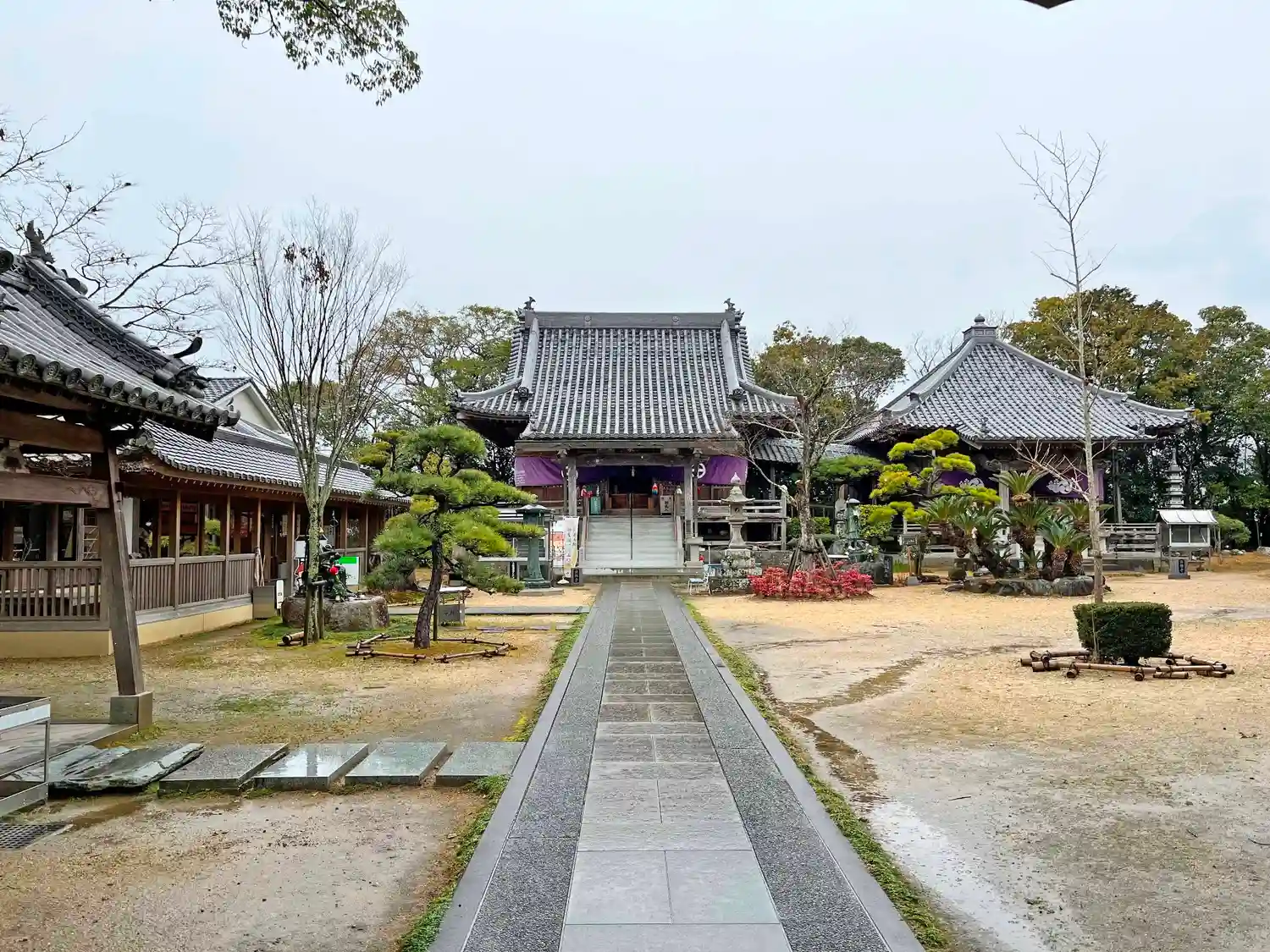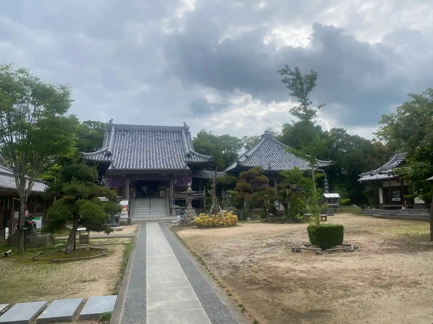 仁王門をくぐったところからの眺め。突き当りに<本堂>、右隣に<大師堂>がある。