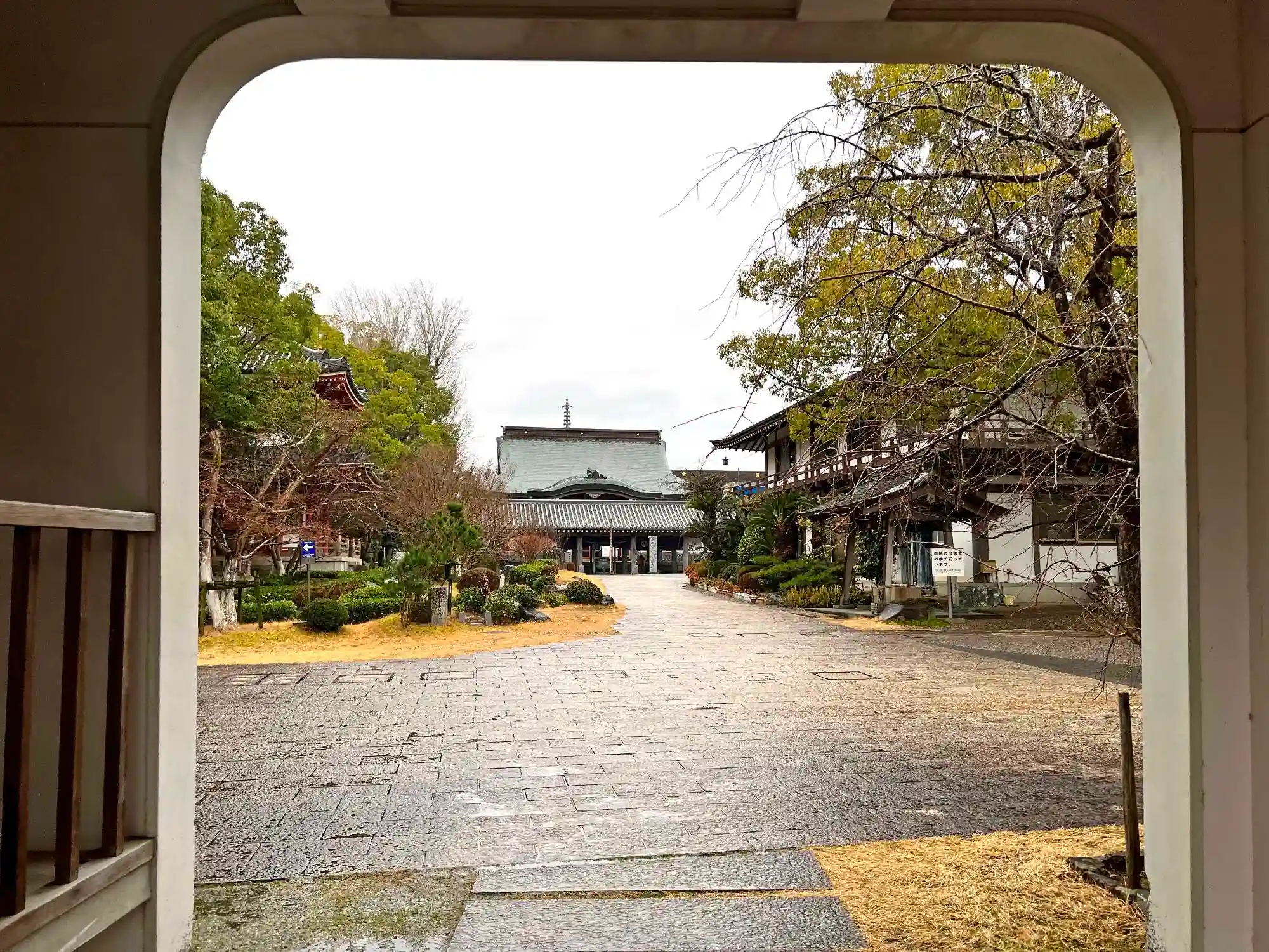鐘楼門をくぐったところからの眺め。突き当りに<本堂>が見える。