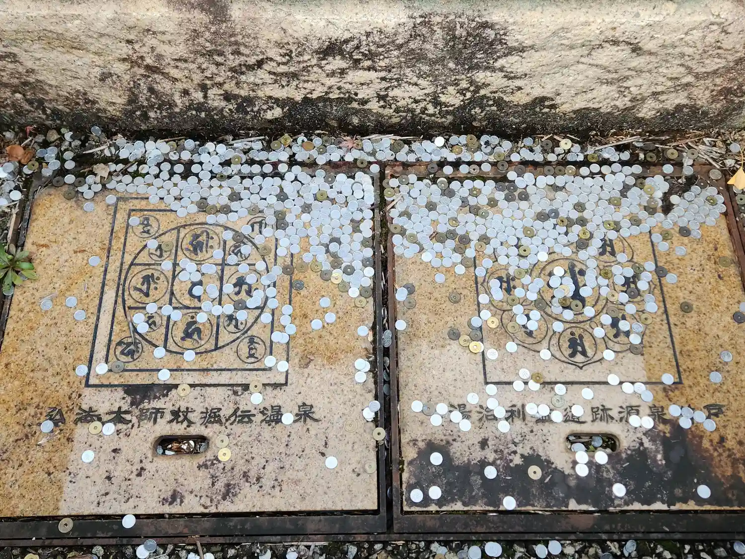 大師堂前から温泉が湧いている。宿坊に泊まると入れるらしい。