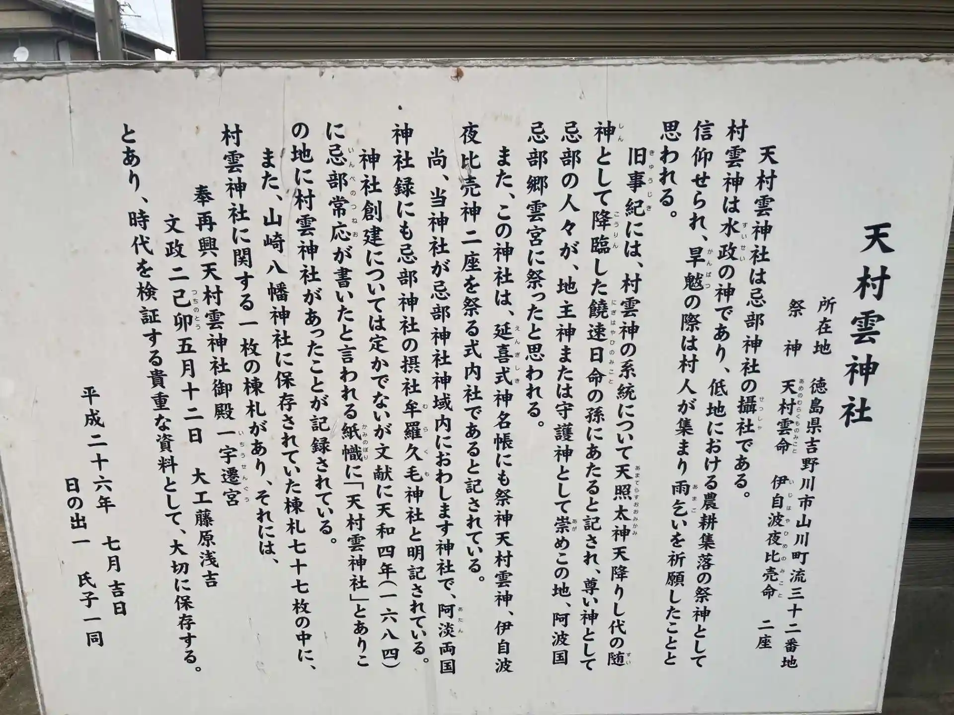 天村雲を冠する式内社は日本全国で阿波だけにしかありません。